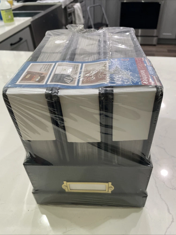 Photo Stor 3 Bonded Leather Photo Albums + Photo Box Model #24674-C Black NIB New Plastic is coming off from storage. Please check pictures...
