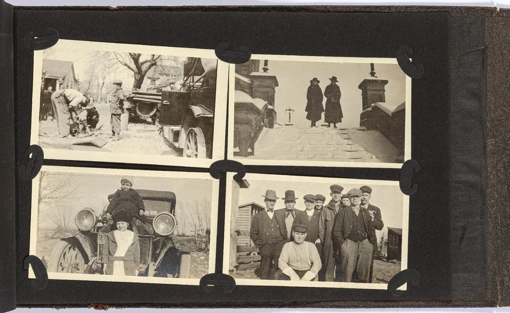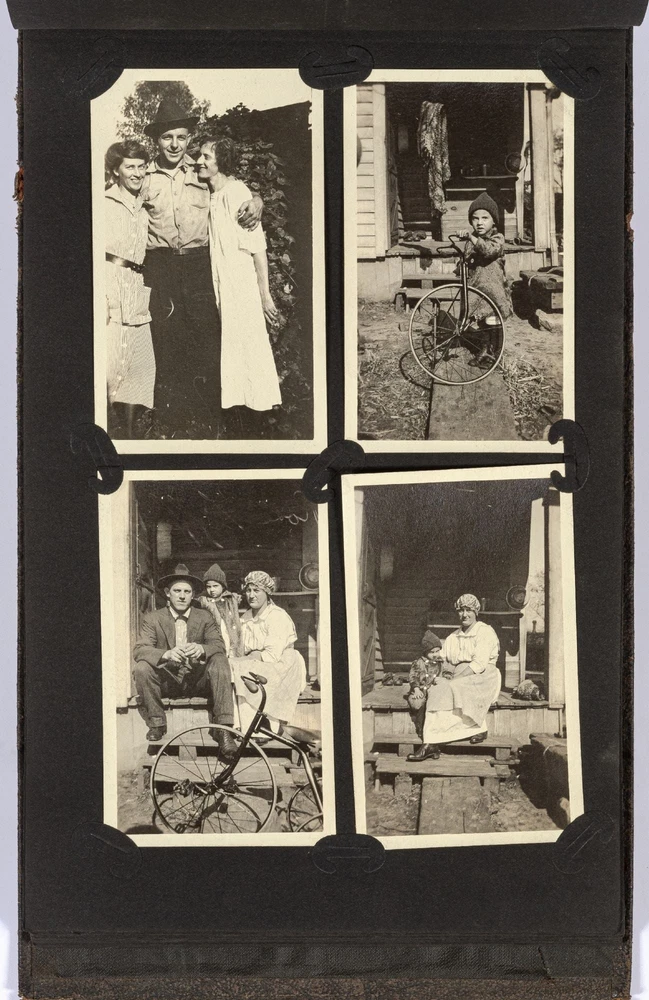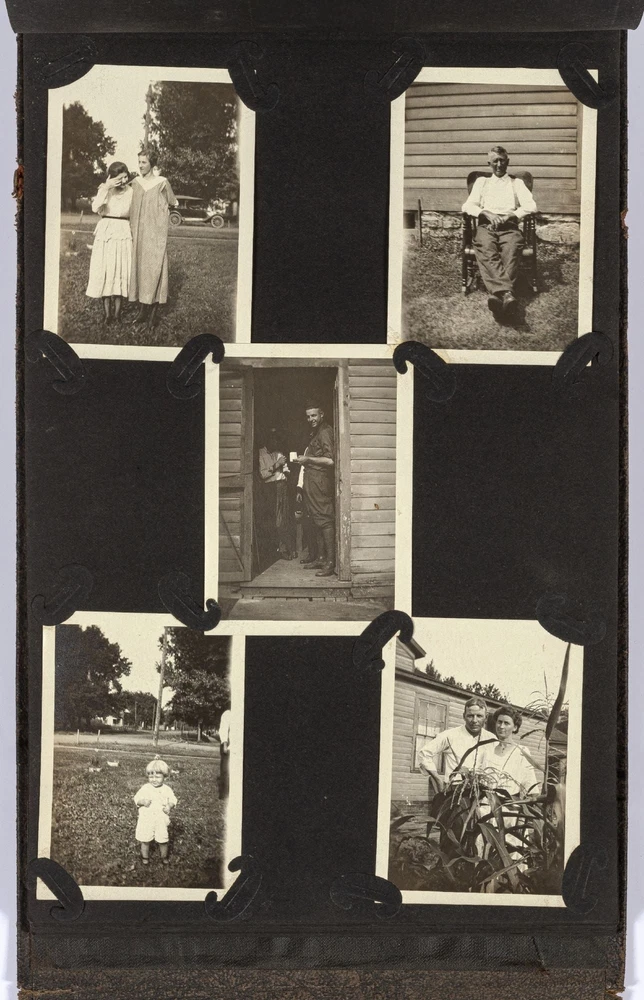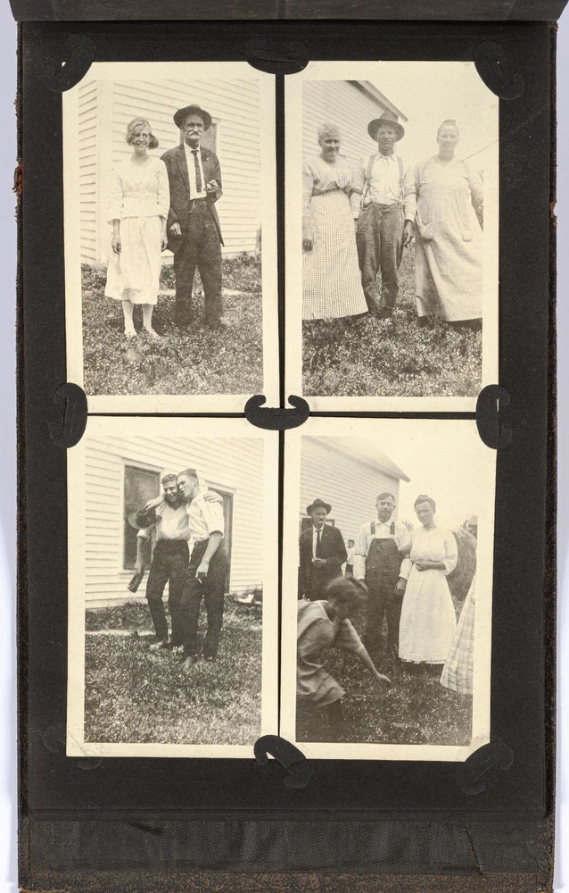 (Photo album): Life in Iowa in the Nineteen-Teens Title: (Photo album): Life in Iowa in the Nineteen-Teens Description: Softcover. Oblong quarto. Approximately 12" x 7.25". String-tied leather over flexible card wrappers with wallet-style flap with snaps. Small tears and rubbing at the extremities, else near fine. Contains approximately 156 gelatin silver photographs. Various size images with most some close variation of 4.5" x 2.5". A few small tears, else the images are mostly near fine or better, with a very few captions. A nice vernacular album mostly centered around an Iowa farming community. Images of a rural family, with family images (including a grown man sitting on the lap of his elderly mother), various images from the pig pens, with horses, ducks, chickens, dogs, and rabbits; farmers and their children fishing and posing with their catches, family groups in rustic farm clothing, including groups of children, some with bicycles; several cute babies, a few street images from a small town, a riverboat, families posing with wagons and autos (with Iowa license plates), or in the snow. Another shows a uniformed soldier, presumably in the early days of the run-up to the American involvement in WWI. Pleasing and expressive images of a rural Iowa family and their extended community. Seller ID: 444647 Subject: Americana, Photography Between the Covers Between the Covers has been selling books for more than 30 years. Today we offer a wide ranging inventory, from Modern First Editions to General Used Books to Rare Archival Collections. We are active members of the Antiquarian Booksellers' Association of America (ABAA) and the International League of Antiquarian Booksellers (ILAB) . Terms All orders ship within two business days. Standard mail is USPS Media Mail. Expedited and international shipping are also available. We offer combined shipping on multiple orders. All books are guaranteed to be as described or they may be returned within 30 days of receipt for a full refund. This listing was created by Bibliopolis.