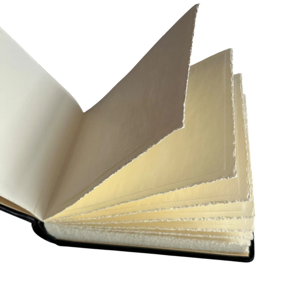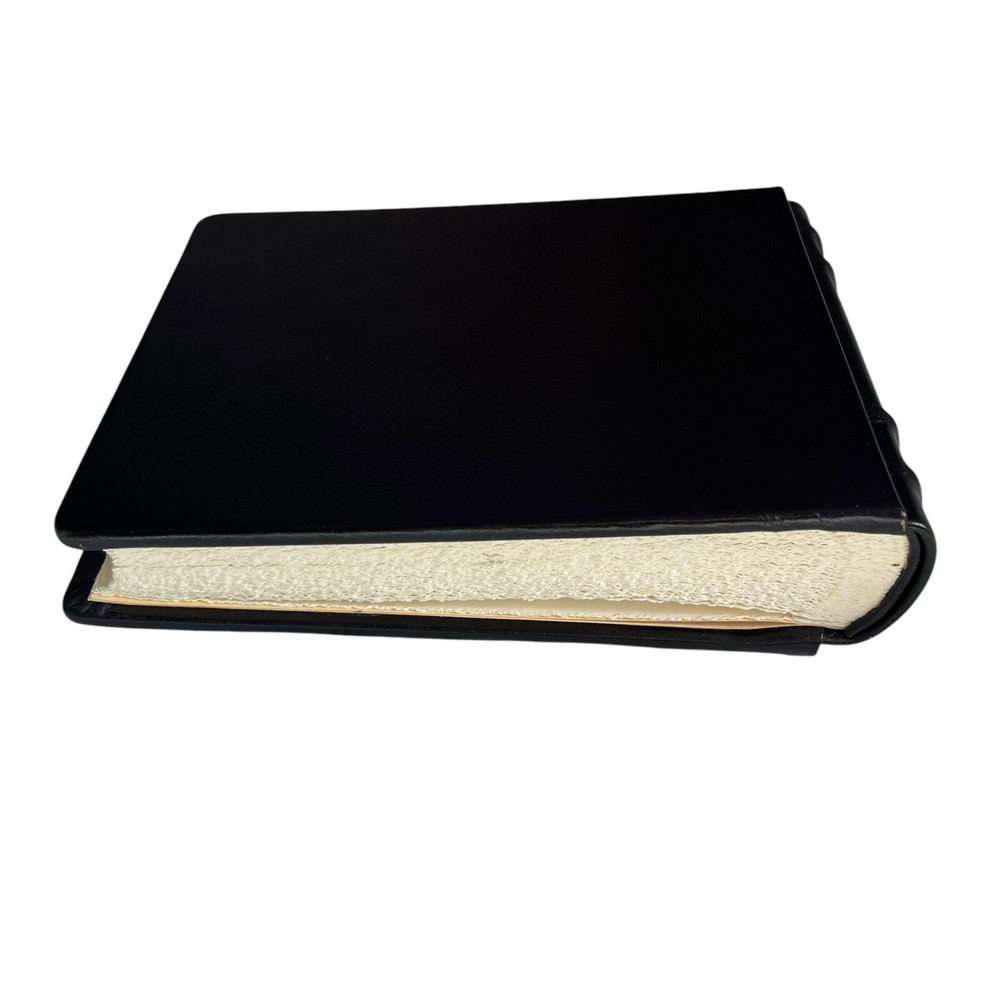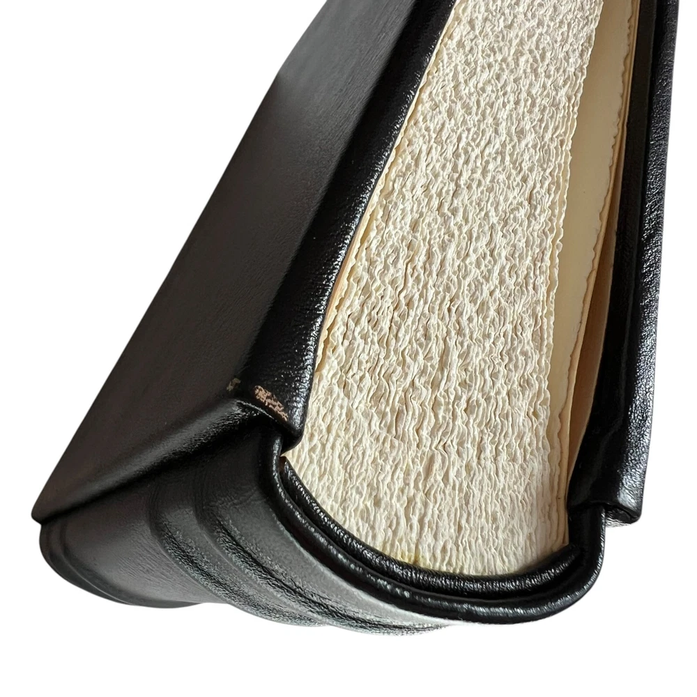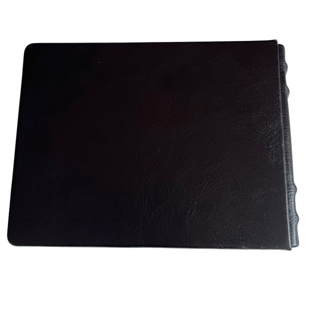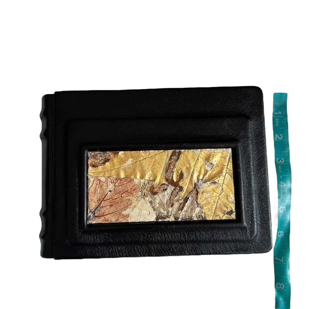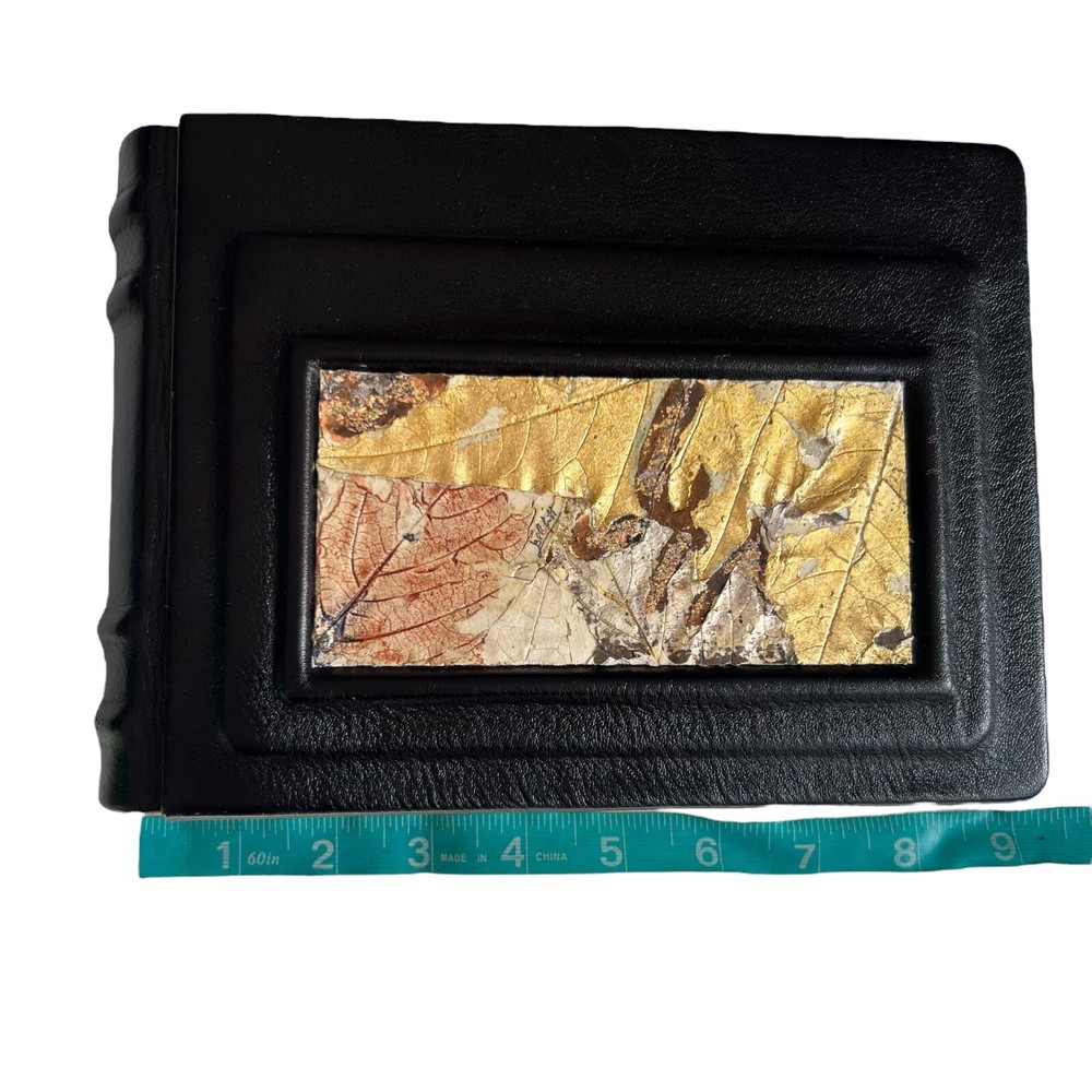 Leather bound photo album / scrapbook, black leather, leaf print, handmade paper pages with raw edges, measures approx: 9x6x2", not used but has a small flaw on the corner and on the right side of the leaf design - see photos Shipping: One business day (or same day) after payment is received. Sales outside of the US go through the Global Shipping Program and buyers are responsible for extra fees (customs/shipping). Payment: PayPal - payment within 2 days of purchase. Sales tax applies to Illinois residents. Returns: No returns, please contact me if you have questions or concerns Feedback: If you are happy with your purchase, please leave a positive feedback. If you have concerns or issues, please contact me directly via eBay so we can resolve the issue. Feedback is how we learn and grow!