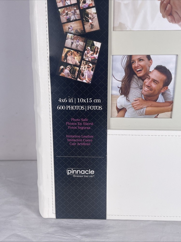 The Pinnacle 4x6 in White Imitation Leather 600 Photo Album is a stylish and durable photo album perfect for storing and displaying your cherished photos. Made from faux leather with a sleek white design, this book-bound album can hold up to 600 4x6 photos. The general theme and elegant design make it a great addition to any home or office setting, providing a convenient and organized way to keep your memories safe and easily accessible.