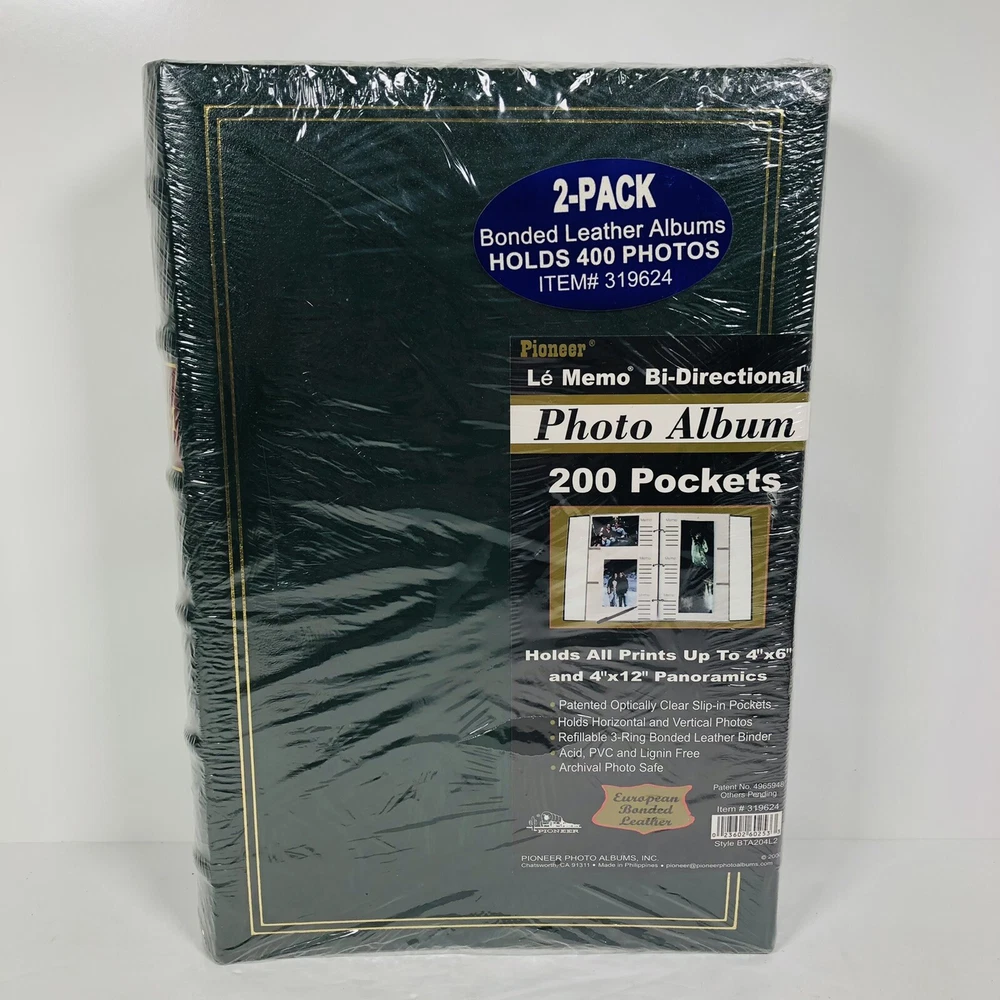 Pioneer 2-Pack Sewn Bonded Leather Photo Albums Green/Gilt Each Holds 200 4x6. Condition is "New". Shipped with USPS Priority Mail Medium Flat Rate Box.