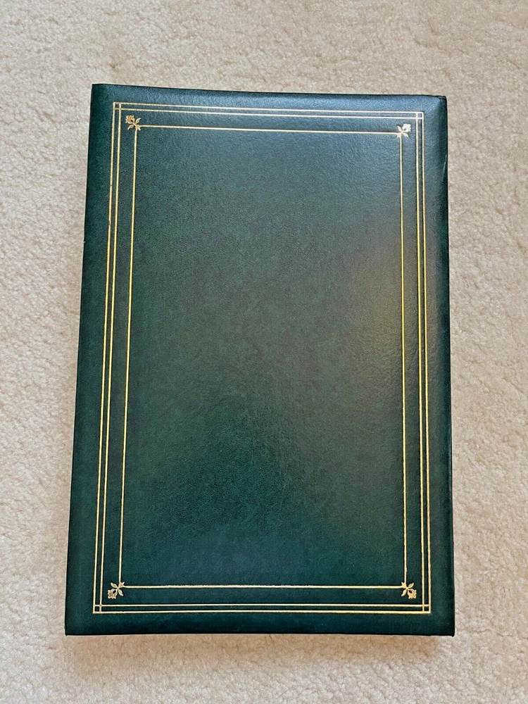 Pioneer BP-200 Photo Album The Pioneer BP-200 photo album is designed to hold up to 204 photos of size 4x6 in, either horizontally or vertically. Some key features of the album are: Capacity: Can hold up to 204 horizontal or 136 vertical 4x6 inch photos, or 68 vertical 4x12 inch panoramic photos. Loading Method: Photos are loaded from the side. Refillable: Yes, allowing for additional pages to be added. Binding: Screw-post bound, ensuring durability and easy page addition or removal. Closure: Features a book-style closure for secure storage. Cover Material: Made of faux leather, available in various colors like burgundy and bay blue. Dimensions: Measures 9.6 x 13.9 inches (24.4 x 35.3 cm). Weight: Weighs 2.8 pounds (1.3 kg). Memo Area: Each page includes a patented memo area beneath each photo pocket for additional notes. Additional Storage: Includes a bonus page for storing CDs or digital photo cards. Archival Quality: The album is acid-free and photo-safe, protecting your memories for years. Item is in very good condition. Color: hunter green