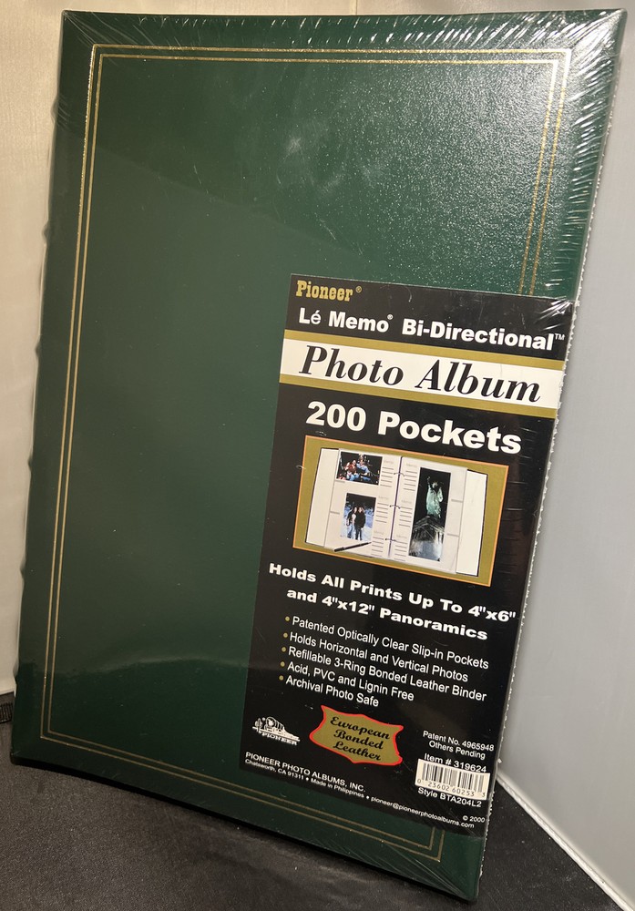 Pioneer BTA204L2 Bonded Leather 200 Pocket Photo Album 4"x6" & 4"x12" Panoramic * please see all pictures for full condition and feel free to ask any questions. *I would say this item is New other but could only choose new or used. It’s new but just missing the outer box.