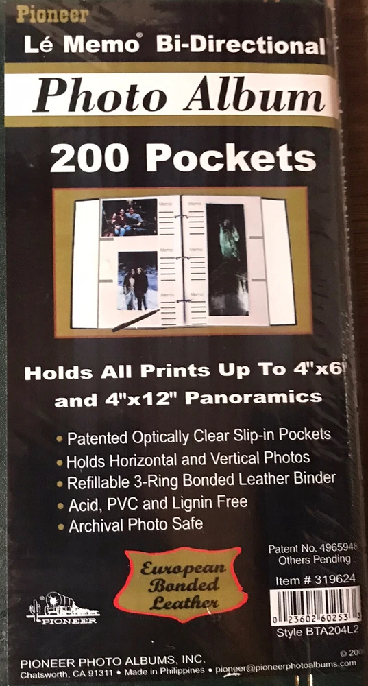 Pioneer Bonded Leather 200 Pocket Photo Album Green 4"x6" & 4"x12" NEW. Photo Album is brand new, just a small tear in the plastic seal (check photos). Shipped USPS Priority Mail.