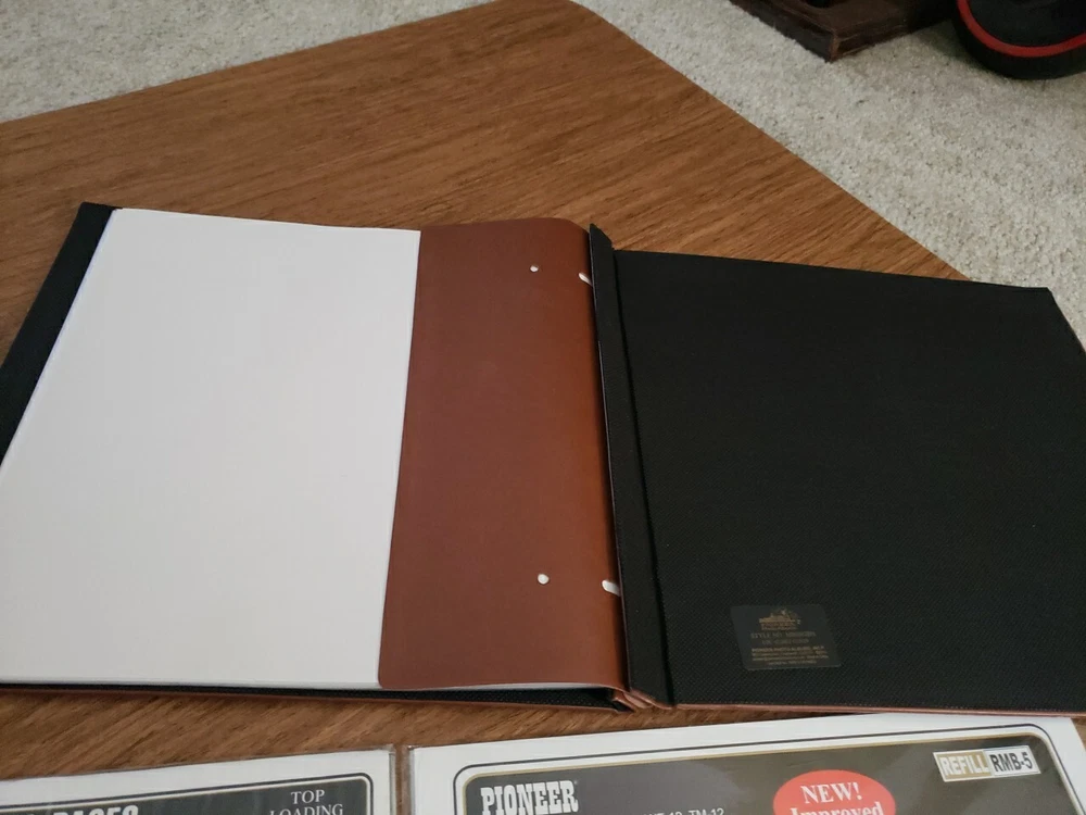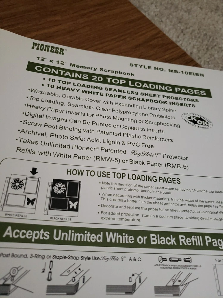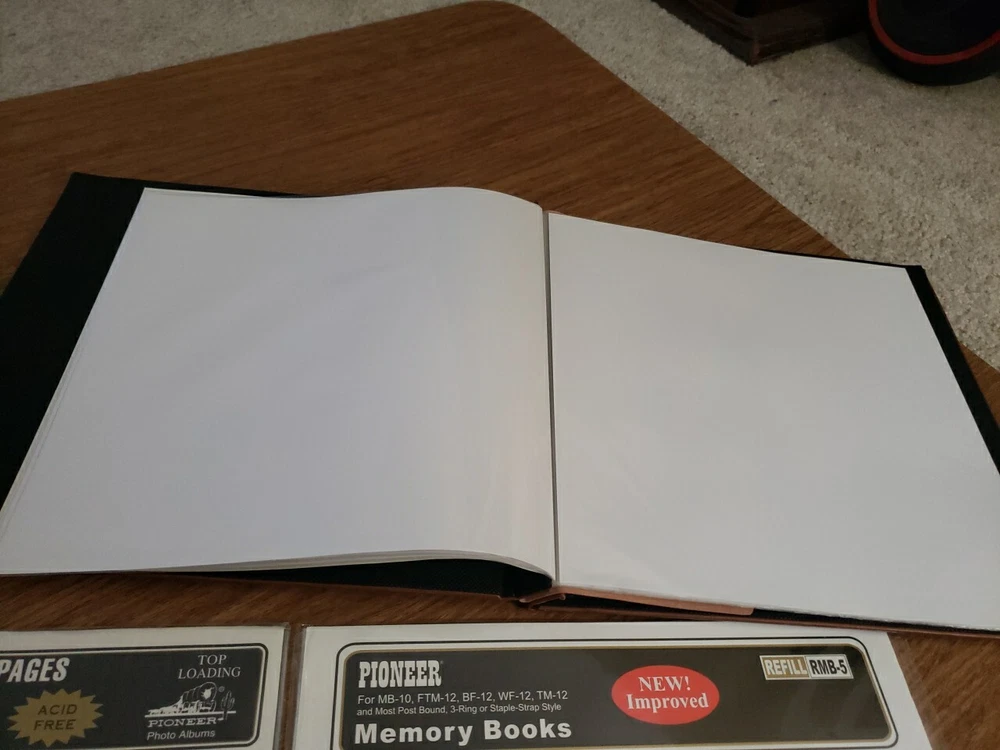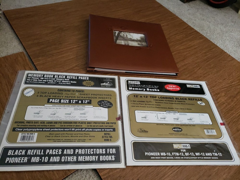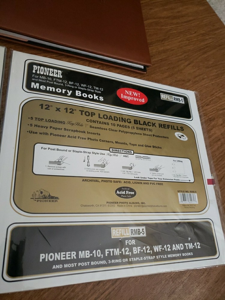 Introducing the Pioneer Embossed Leatherette Post Bound Scrapbook Album with 2 Top Loading Black Refill packs containing 10 pages in each pack, perfect for preserving your cherished memories. With a beautiful leaf pattern on the brown cover, this album measures 12.5 inches in height, 13 inches in width, and 1.4 inches in length. New Designed for scrapbook lovers, this postbound album is suitable for holding 12"x12" sized pages. The album features a sturdy construction and comes with the 20 top loading pages with the included refill packs. With the Pioneer brand, you can trust the quality and durability of this album. Check out my Ebay store and other vintage hats, clothing items, golf shirts, shoes, collectibles, toys, puzzles, board games, video games, albums, scrapbooking supplies, refill pages, baseball bats and gloves, graded Gijoe figures, sports jerseys and jackets, dvds, vhs tapes, cassettes, cds, records, audiobooks, 8 tracks, electronics, perfumes and more.