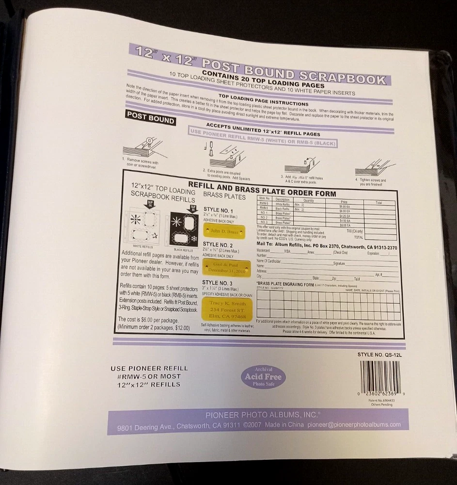 Pioneer European Leather Bonded Memory Scrapbook - 12x12 - 20 Pages This Pioneer European Leather Bonded Memory Scrapbook is perfect for creating a unique and personalized scrapbook. The kit includes: 20 top loading pages 10 sheet protectors 10 paper inserts European Leather Bonded (85% Leather) Archival, photo safe; Acid, Lignin and PVC Free The page size is 12"x12", allowing you to capture and display your memories in a special way. This album is ideal for anyone who loves to create and wants to bring their memories to life. It is a great addition to any scrapbooking collection and offers a high-quality experience. The album is durable and will last a lifetime, making it a perfect gift for someone special. Brand New without original tags.