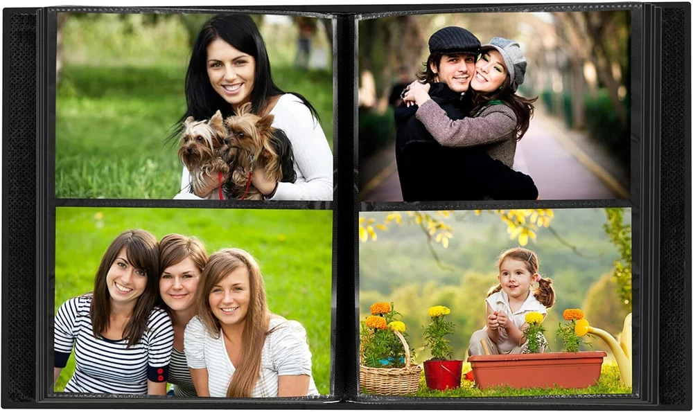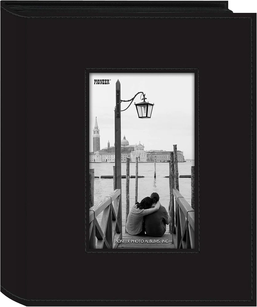 To view our combined ship rates add all items to your shopping cart. This sewn leather-like photo album includes a photo frame cover. Sewn cover with frame cutout Clear 2-up plastic pockets with black mesh background Photo Size: 4" x 6" Capacity: 200 photos Dimensions: 6-3/4"W x 9"H x 2"D Frame opening: 3-1/8"W x 5-1/4"H Archival, acid free, photo safe