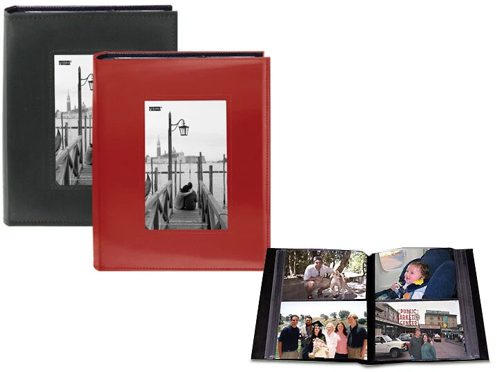 To view our combined ship rates add all items to your shopping cart. This sewn leather-like photo album includes a photo frame cover. Sewn cover with frame cutout Clear 2-up plastic pockets with black mesh background Photo Size: 4" x 6" Capacity: 200 photos Dimensions: 6-3/4"W x 9"H x 2"D Frame opening: 3-1/8"W x 5-1/4"H Archival, acid free, photo safe