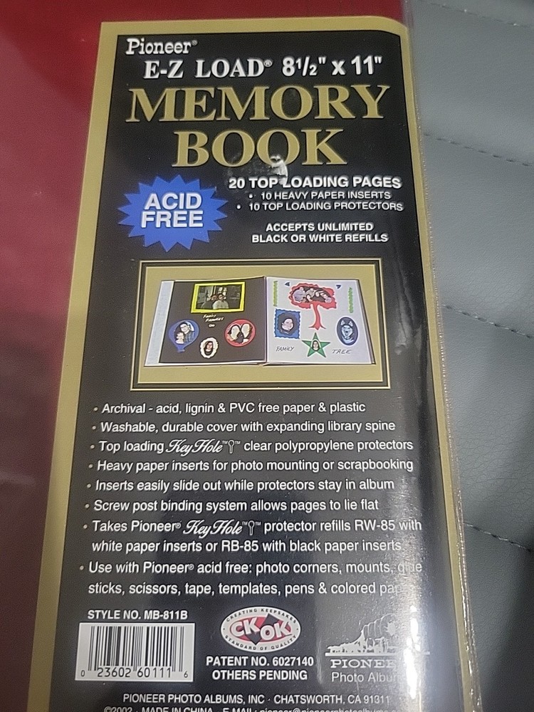 This is a Pioneer brand postbound album in red leatherette, with dimensions of 8.5" x 11". It is designed for scrapbooking and paper crafts, featuring a burgundy color. The album has a height of 0.85 inches, a length of 11.45 inches, a width of 9.73 inches, and a weight of 1.465 pounds.