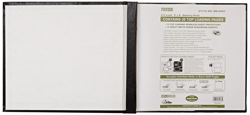 Pioneer MB811-60667 Leatherette Post Bound Album, 8.5-Inch by 11-Inch, Black These 11x8-1/2in albums offer a sleek design quality and a timeless look for any scrapbook project and the vinyl leather look cover is easy to wipe clean. Albums include ten acid and lignin free and archival top-loading page protectors with white cardstock inserts. Albums measure 11-3/8x9-7/8x1-1/4in and are available in a variety of colors. Imported. Features Sleek design quality Top-loading page protectors Acid and Lignin free Details Product Dimensions: 11.0 x 8.5 x 0.0 inches Item Weight: 1.4 pounds Shipping Weight: 1.4 pounds Manufacturer: Pioneer Item color: Black Item model number: MB811-60667 Item MPN: MB811-60667 Item part number: MB811-60667 Fast and Free Shipping You're already purchasing the item. Why pay additional for shipping, especially slow shipping? We get your order shipped out within 1-business day and delivered to your doorstep as quickly as possible. Competitive Pricing With our dynamic pricing model, our prices are always competitive. Our prices are some of the lowest that you will find on the internet. Rest assured that you're getting a good deal when purchasing with us. 30-day Money Back Guarantee We are committed to making sure that you leave this transaction satisfied. If you're unhappy with the product for any reason, you may return it back for your money-back or a replacement within 30 days. No questions asked!