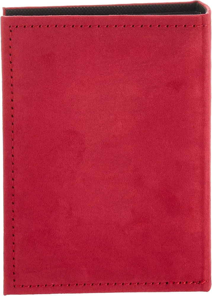 To view our combined ship rates add all items to your shopping cart. This sewn faux suede fabric cover album has a photo frame cover, embroidered patch and a deluxe rounded spine. Holds one 4" x 6" photo per page, 100 total 2-1/2" x 2-1/2" front cover opening for your favorite photo Clear top-loading pockets with black mesh background Includes dust jacket Archival, acid free, photo safe