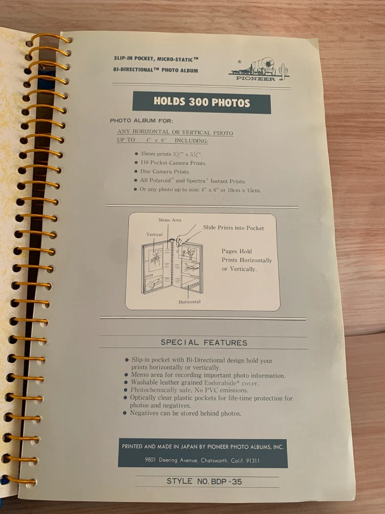 This album is a game-changer for photo storage! The faux leather cover feels premium, and the brass spiral binding adds durability. Fits 300 pics perfectly—no slipping or bending. Love how easy it is to flip through memories without damaging them. Made in Japan quality really shows. Perfect for organizing years of family photos in one sleek, sturdy album. Highly recommend!