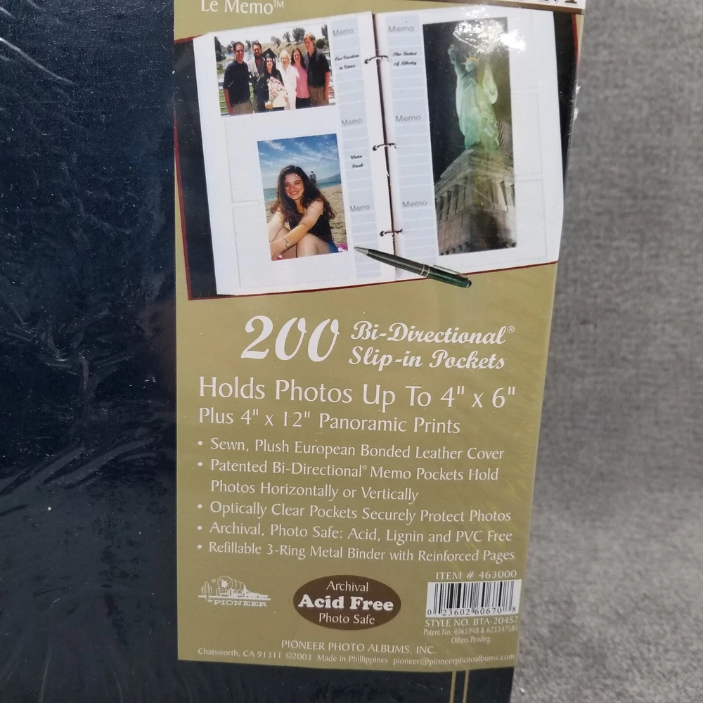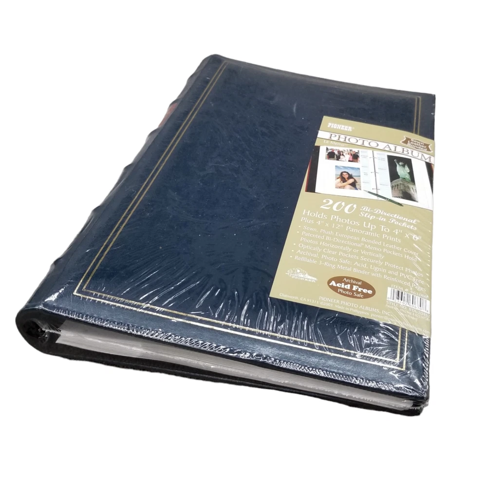 Pioneer Photo Album Blue Bonded Leather Bi-Directional 200 Pockets, 4"x6" 4"x12" ITEM DETAILS: Risk Free Purchase! Brand: Pioneer Color: Blue Material: Bonded Leather Please see measurements in listing photos. CONDITION: NEW WITH TAGS! From a Smoke-Free Home. Please carefully review ALL pictures before purchasing as all are of the exact item being sold. No stock photos were used. SHIPPING & RETURNS: Ships NEXT DAY via USPS Priority Mail. FREE Returns for any reason! Please contact us first before initiating a return / leaving feedback as we're eager to help! DISCOUNTS: Offered for combined / bundled orders! Before purchasing, check out our other listings. ABOUT US: Wando Warehouse, LLC is a Charleston, SC USA based company. We're a purveyor of unique sundries & finds sourced from Lowcountry homes, estate sales, consignments, & varied distinctive suppliers. Please contact us if you have any questions, concerns, &/or requests. Thank you for shopping Wando Warehouse!