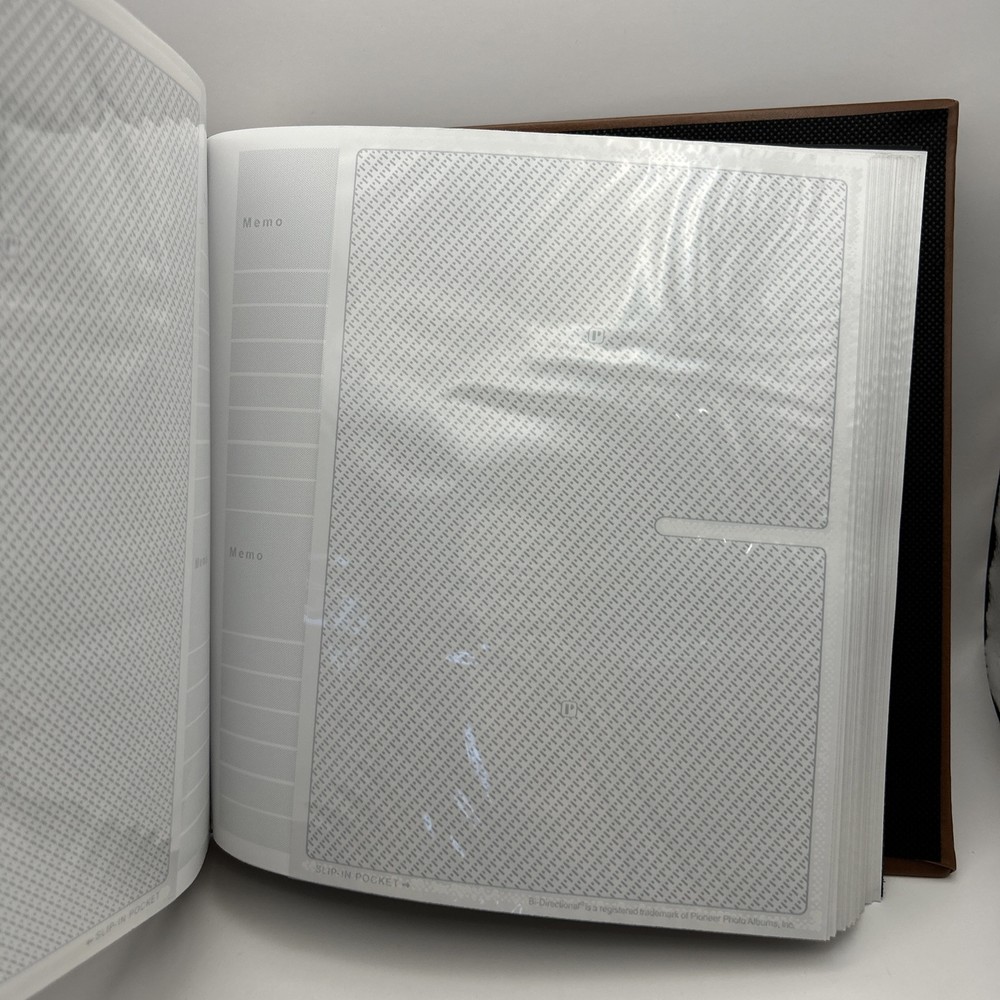 Pioneer Photo Album Holds 200 pictures up to 4" x 6" Brown Leatherette DA-200E Measures approx. 9x9.5 New, never used. There is a light scratch on the front cover. Please see pictures