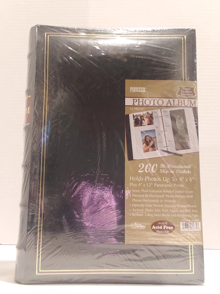 This Pioneer photo album is a top-quality product that ensures the safekeeping of your cherished memories. The album features 200 bi-directional slip-in pockets that can hold up to 4" x 6" photos. It comes with a 3-ring binder that allows for easy organization and customization of your photo collection. The album is made of luxurious leather material and is presented in a beautiful green color. The Pioneer photo album is perfect for keeping your photo memories safe and organized. With its high-quality construction and user-friendly design, it is an excellent choice for anyone who wants to preserve their precious moments. (IC)