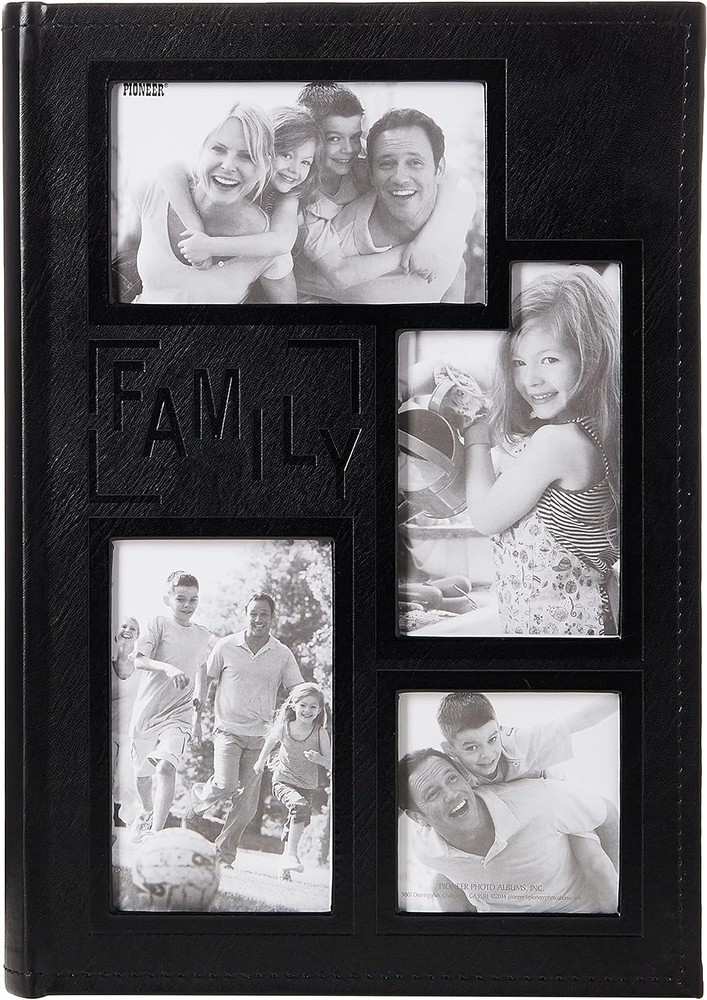 Pioneer Photo Albums DA-300COL Album, Black Product Details Brand: Pioneer Photo Albums Color: Black Material: Faux Leather, Plastic Specific Uses For Product: Photo Album Recommended Uses For Product: Photo Album Target Audience: Father Model Name: DA-300COL Included Components: 10 Piece Special Feature: multiple_image_frame Shape: Rectangular Occasion: Engagement, Graduation, Father, Valentine's Day Pages: 100 Pages Frame Type: collage Number of Pieces: 1 Capacity: 3E+2 Photos Max Input Sheet Capacity: 100 Manufacturer: Pioneer Photo Albums Product Dimensions: 2.12 x 9 x 13.12 inches Item model number: DA-300COL Is Discontinued By Manufacturer: No Item Weight: 2.2 pounds Country of Origin: China Sewn leatherette cover Embossed collage frame design Holds 300 4-inch by 6-inch photos 3 Photos per page Archival, photo safe: acid, lignin and PVC free This photo album holds 300 4-inch by 6-inch photos in optically clear plastic pockets. It features a collage frame front with embossed "Family" text. The album is bookstyle bound in a black sewn leatherette cover. Photos are displayed three per page.