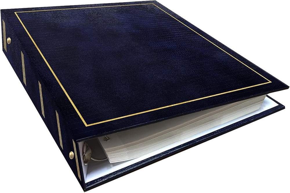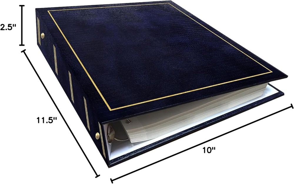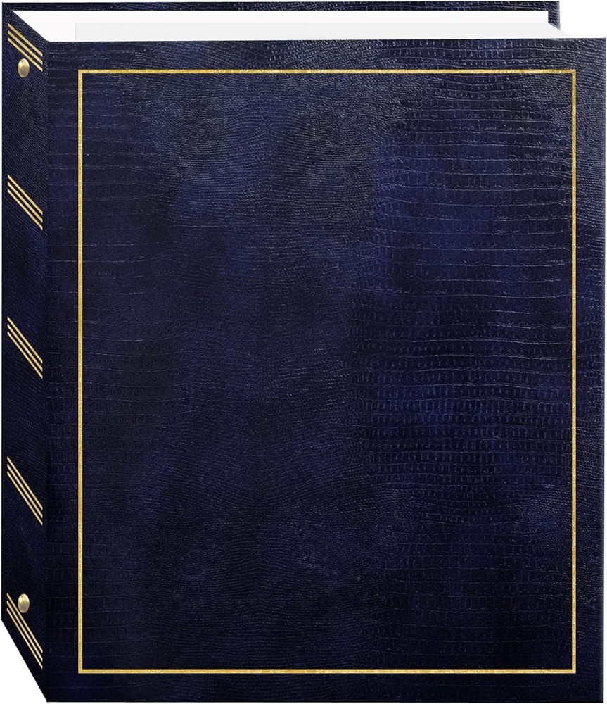 Pioneer Photo Albums Magnetic Self-Stick 3-Ring Album 100 Navy Blue Product Details Brand: Pioneer Photo Albums Occasion: Wedding, Anniversary, Birthday Color: Navy Blue Material: Faux Leather Theme: Book Specific Uses For Product: Photo Album Recommended Uses For Product: Photo Album Target Audience: Family Members, Couples Model Name: LM-100 Navy Blue Included Components: 3-ring binder, magnetic refills Special Feature: refillable, customizable Style: Album Pattern: Solid Shape: Rectangular Product Dimensions: 2.5"L x 11.5"W x 10"H Pages: 100 Number of Pieces: 101 Capacity: 1E+2 Pages Max Input Sheet Capacity: 100 Manufacturer: Pioneer Photo Albums, inc. Item model number: LM-100/NB Is Discontinued By Manufacturer: No Item Weight: 2.1 pounds Country of Origin: China Fast-Stick magnetic pages feature a clear plastic overlay that self-adheres to the page, securely holding photos Initially contains 100 pages (50 sheets), plus 3-ring binding accepts refills (Style No. RLM) 8.25''x10.5'' pages hold many size photos including 2.5"x3.5" wallet, 4"x6", 5"x7", 6''x8'' and more Leatherette cover with gold stamping Photo safe: acid and PVC emission free This leatherette cover photo album features gold stamping and Fast-Stick magnetic pages with a clear plastic overlay that self-adheres to the page, securely holding photos. The album's 8.25 x 10.5 inch pages hold many size photos including 2.5 x 3.5 inches wallet, 4 x 6 inches, 5 x 7 inches, 6 x 8 inches and more. It initially contains 100 pages (50 sheets). The 3-ring binding accepts refills (Style No. RLM). Photo safe: acid and PVC emission free.