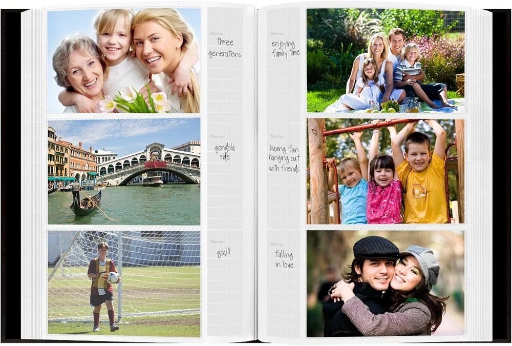 Pioneer Sewn Bonded Leather BookBound Bi-Directional Photo Set of 1, Black Product Details Brand: Pioneer Photo Albums Color: Black Material: Leather Specific Uses For Product: Photo Album Recommended Uses For Product: Photo Album Target Audience: Unisex-Adult Special Feature: Memo writing area Style: Photo Album Pattern: Solid Shape: Rectangular Product Dimensions: 9.25"L x 2"W x 14.13"H Occasion: Engagement, Graduation, Father, Valentine's Day Pages: 3 Size: Set of 1 Number of Pieces: 1 Occasion: Graduation, Engagement, Father Frame Type: Transparent Max Input Sheet Capacity: 300 Manufacturer: Pioneer Photo Albums Item Weight: 3.05 pounds Country of Origin: China Item model number: CLB-346/BK Is Discontinued By Manufacturer: No Assembly required: No Batteries required: No European bonded leather cover Holds 300 photos up to 4"x6" Optically clear pockets Memo writing area Photo Safe: Acid, lignin and PVC free This sewn European bonded leather photo album features a deluxe raised rounded book style spine. It holds 300 photos up to 4"x6" in optically clear pockets with a shaded background and a memo writing area. Photos are displayed three per page. Album measures 14.125"x9.25"x2". Photo safe: Acid, lignin and PVC free.