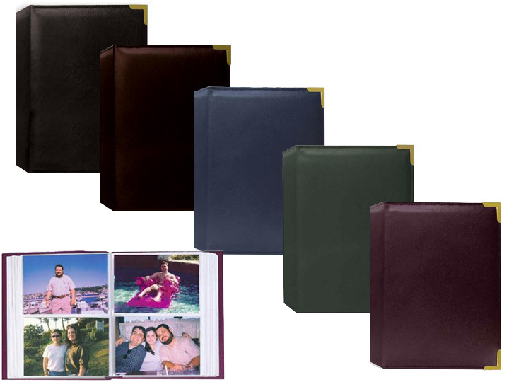 To view our combined ship rates add all items to your shopping cart. Elegant sewn leatherette covers accented by brass corners Clear 2-up plastic pockets with white mesh background Photo Size: 4" x 6" Capacity: 208 photos Dimensions: 7" x 9" Archival, acid free, photo safe