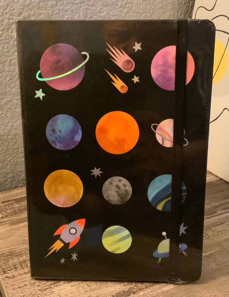 SUPER COOL Planets / UFO hard cover Journal / Notebook / Sketchbook / Diary by Momentum Brands. 96 blank sheets, black closing flap attached, NEW SEALED!