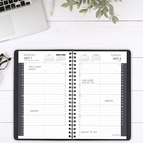 30 Days Return Policy Fast Delivery Trusted seller Planner 2024-2025 Academic, Daily Appointment Book, 5" x 8", Small, Flexible Product Description ACADEMIC PLANNING – Academic date range covers 12 months from July 2024 — June 2025 with Julian dates GUARANTEED TO LAST ALL YEAR – ACCO Brands will replace any defective planner that is returned within one year from the date of purchase. This does not cover damage due to misuse or abuse. INK BLEED RESISTANCE – Plan your schedule without fear of distracting ink bleeding. Our high-quality paper is designed for ink bleed resistance, which keeps plans neat and legible. DAILY OVERVIEW – One weekday per page with ruled quarter-hourly appointment times from 7:00 a.m. - 7:45 p.m. Weekends share a page and have appointments from 7:00 a.m. - 4:45 p.m. on Saturdays. Each page measures 5" x 8". ENHANCED ORGANIZATION – Special pages include a 3-year reference calendar, class schedule, 2 important numbers pages and a spacious pocket for extra storage PROFESSIONAL DESIGN – Take charge of your schedule with classic style. Planner has a black faux leather cover and twin wire binding to prevent snags and secure pages. ASSEMBLED IN THE U.S. – Thoughtfully designed and assembled in the U.S. using high-quality materials Shipping Returns Payment Shipping Shipping is FREE to all addresses other than APO/PO boxes in the lower 48 states. All our stock ships from US-based warehouses. Shipped via USPS or UPS (depending on location and package weight) Unless stated otherwise, all orders will ship within 24-72 hours of your payment being processed. Check our feedback to see the great reviews of FAST shipping we offer. Returns As our valued customer, we will do our best to make sure the product you receive arrives to you on time and as expected. If you are not satisfied with your purchase, please contact us within 30 days of receiving your order to process a return. Payment We currently accept payment via eBay managed payments only. Once payment is cleared, we will dispatch your shipment within 1-3 business days. Please refer to the "Shipping" tab for more information regarding shipping speed to your destination.