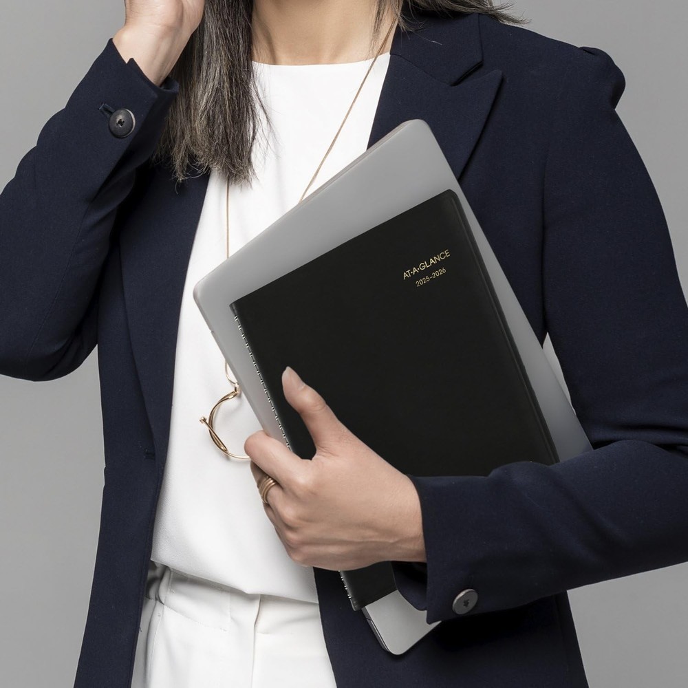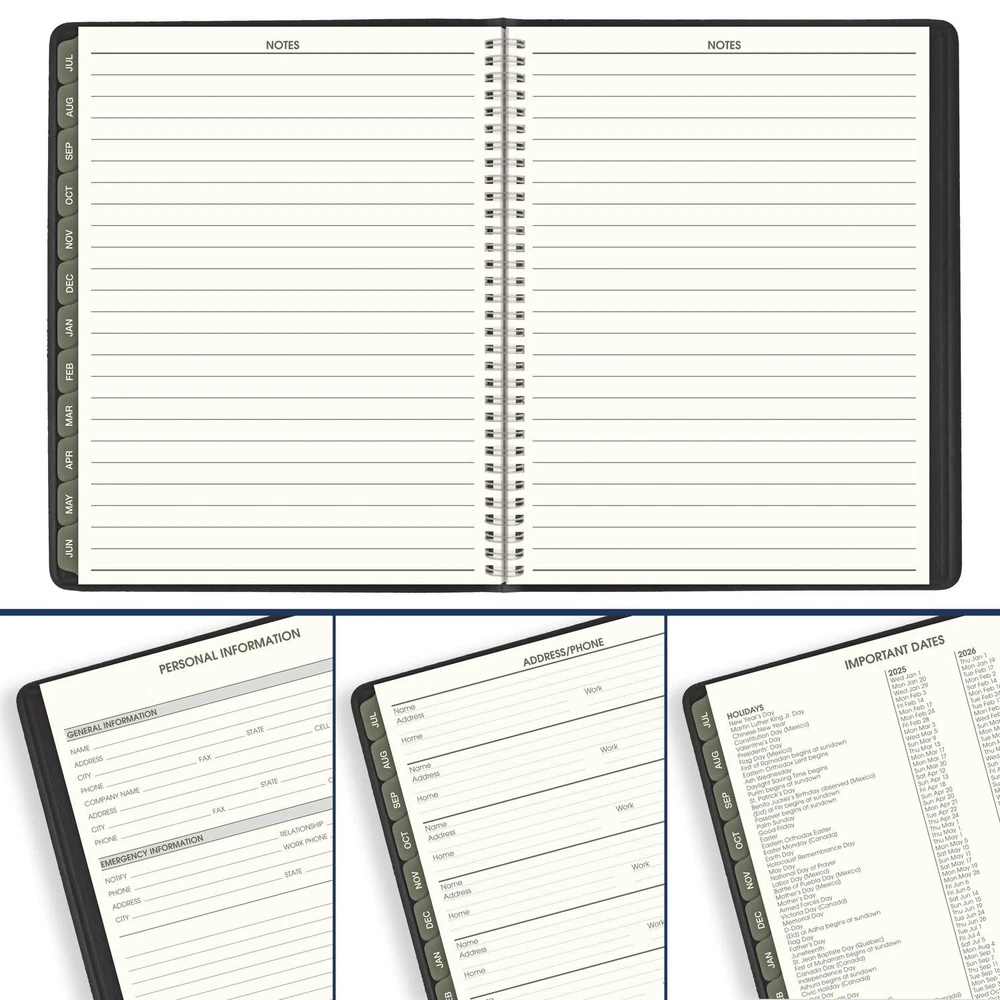 ACADEMIC PLANNING – Keep track of your schedule with an eco-friendly twist this year. Date range covers 12 months from July 2025 – June 2026 with Julian dates. GUARANTEED TO LAST ALL YEAR – ACCO Brands will replace any defective planner that is returned within one year from the date of purchase. This does not cover damage due to misuse or abuse. RECYCLED MATERIALS – Make an environmentally conscious choice. Contains 100% post-consumer waste recycled paper, 50% post-consumer waste recycled covers. Tips for green living included on every page. WEEKLY & MONTHLY OVERVIEWS – Weekly spreads have ruled quarter-hourly appointments weekdays 7:00 a.m. - 8:45 p.m. and Saturdays 7:00 a.m. - 5:30 p.m. Monthly spreads are unruled for open planning. 8-1/4" x 11" page size. ENHANCED ORGANIZATION – Special features include a 3-year reference calendar, 4 future planning pages, important dates, contacts pages and 16 notes pages PROFESSIONAL DESIGN – Planner has a black faux leather cover and twin wire binding to help prevent snags and secure pages