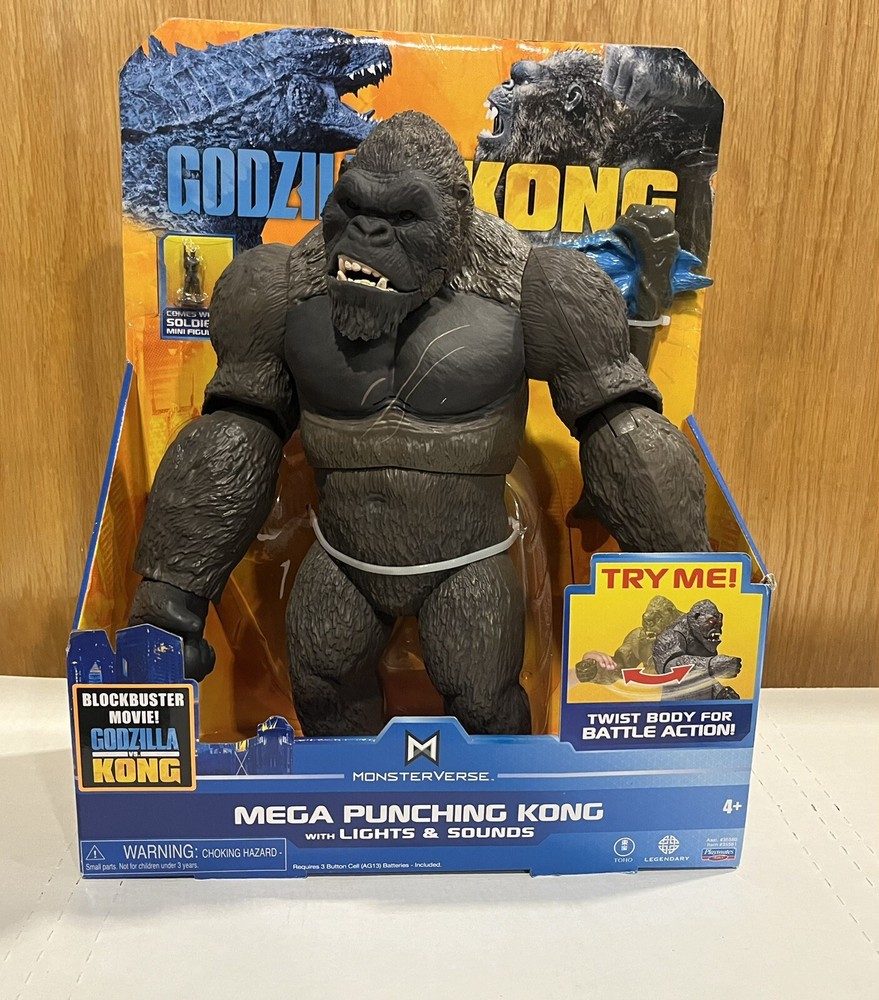 Bring the epic battle of Godzilla vs Kong into your home with this 13" Mega Punching Kong action figure by Playmates Toys. This battery-powered toy is perfect for fans of the franchise and features intricate details that accurately represent the character from the movie. The figure stands tall with an impressive item height and is made of durable plastic that can withstand hours of playtime. This action figure is a great addition to any collection and is perfect for kids aged 4 years and up. With its stunning design and impressive features, it is sure to be a hit among fans of the franchise. Get your hands on this Playmates Godzilla vs Kong action figure and relive the epic battle again and again.