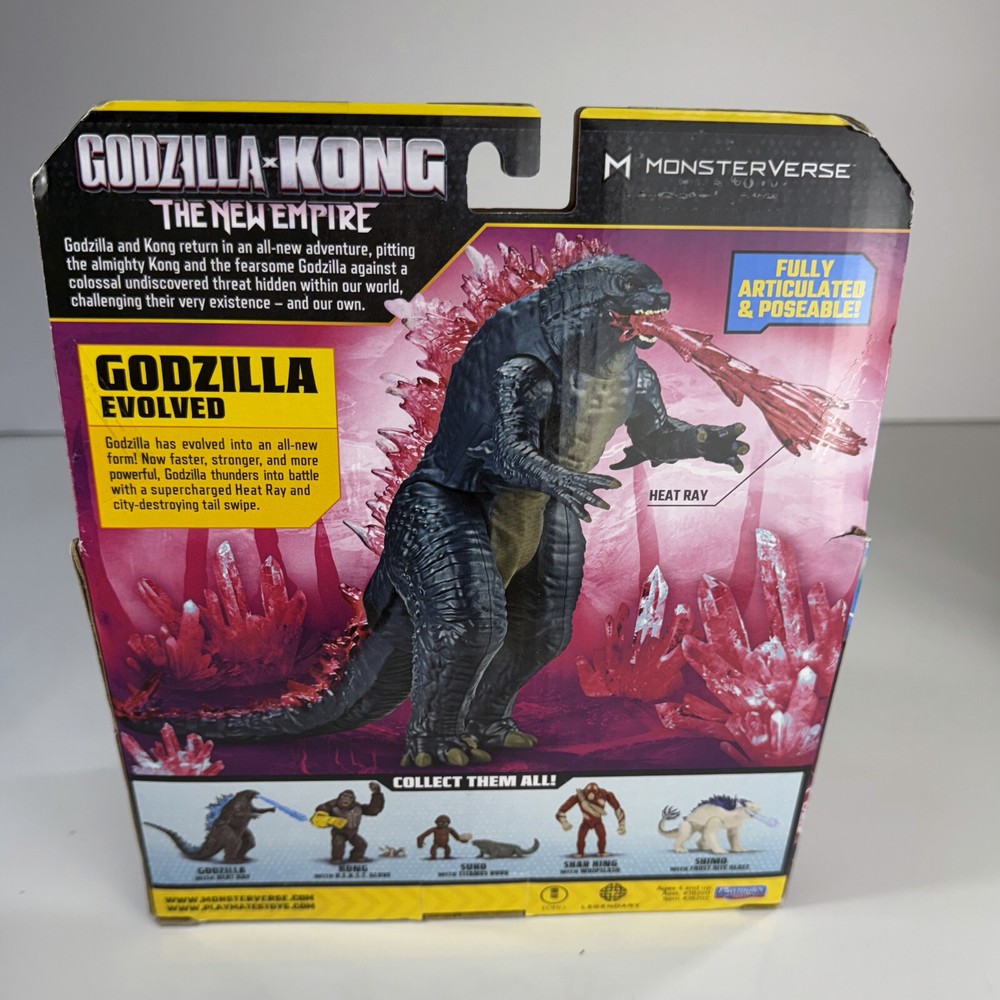 The Playmates Godzilla x Kong The New Empire 6β GODZILLA EVOLVED Figure is a limited edition action figure of Godzilla from the Monsterverse Godzilla x Kong series. It features a multicolor design with a removable tail and heat ray accessory. Made of ABS plastic, this 1:12 scale figure is fully jointed and stands 8 inches tall. Released in 2024, it is part of the Godzilla franchise and is a special edition collectible item.