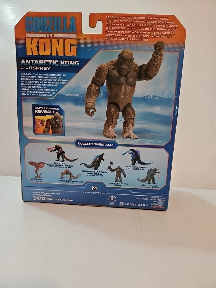 Playmates Monsterverse Godzilla vs Kong Godzilla Battle Antarctic Kong Osprey 6" King Kong With Battle Damage on arm. New Please see the pictures.