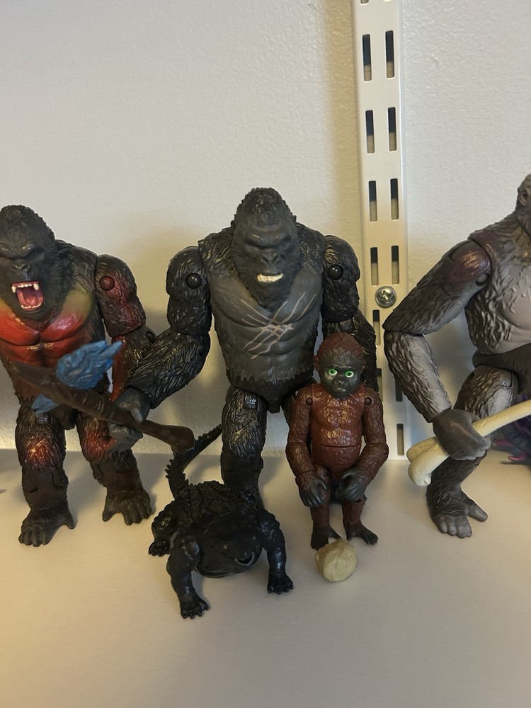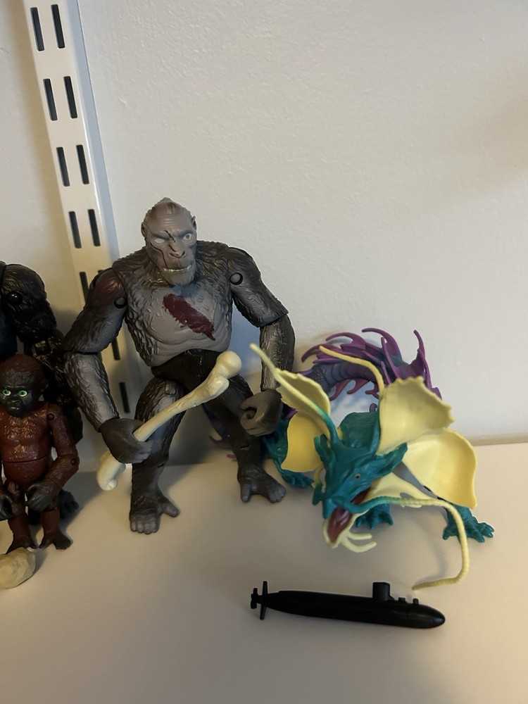 Lot includes -Godzilla Energized (Plane included) -Godzilla Evolved (No Atomic Breath) -Skar King (No whiplash) -Battle Mechagodzilla (Proton Scream included) -Kong With Beast Glove (No heav) -Kong (Battle Axe included) -Suko and Doug (Rock included) -One Eye (Bone Included) -Tiamat (Submarine included) -Giant Shimo Relatively good condition for all figures