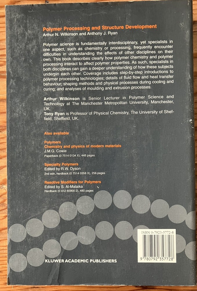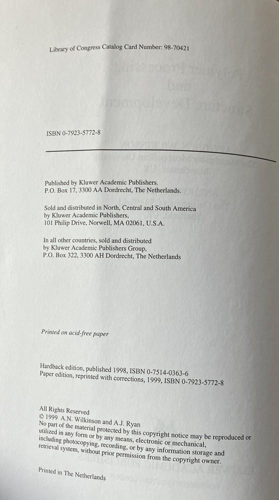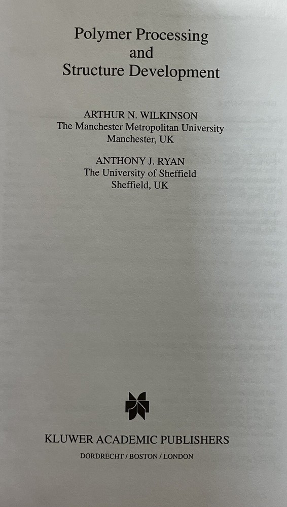 Polymer Processing and Structure Development - Ryan 1998 Softcover excellent condition...