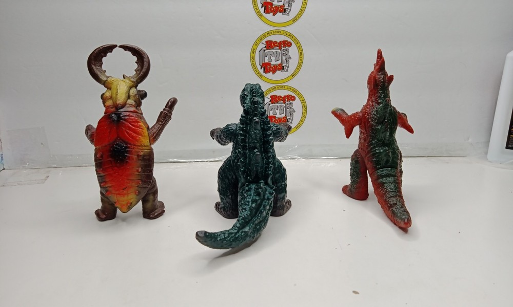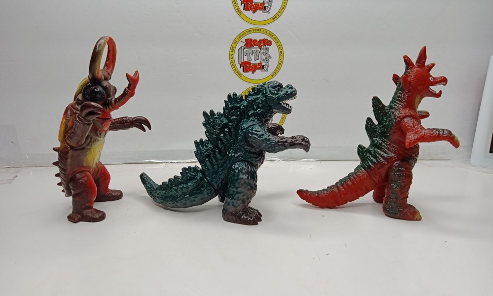 SEE PHOTOS!! You are looking at a vintage poppy Godzilla lot of Godzilla, titanosaurus and noko girin I do my best to get all items in the mail asap, but please be patient if it takes me a few days to ship your item out. Thanks for looking and be sure to check out my other items. We are a real Brick and Mortar Store located in St. Louis, Mo. We are always buying toys. Retro TV Toys