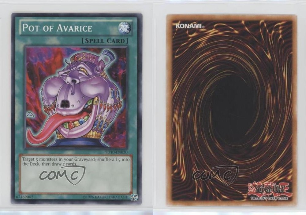 2007 Yu-Gi-Oh! Machine Re-Volt - Structure Deck [Base] - Unlimited #SD10-EN030 Pot of Avarice COMC Item: 143689936 - YuGiOh Card - Featuring Pot of Avarice Search for more: 2007 Yu-Gi-Oh! Machine Re-Volt Search for more: 2007 Yu-Gi-Oh! Machine Re-Volt - Structure Deck [Base] - Unlimited View all of our Listings Auctions Buy It Now About Us Located in the beautiful Pacific Northwest, COMC (Check Out My Cards) is the world's largest consignment service for trading card singles. More than 10,000 people have used our consignment service to list over 50 million trading cards. Find out how we can help you consign your items on eBay by contacting us through eBay messaging. COMC -- "The Safe & Easy Way to Buy & Sell" Raw Condition for Modern Cards Unless otherwise noted, raw modern cards are listed in Near Mint-Mint condition or better. A NM-MT card appears to be Mint at first glance, but upon closer inspection, may exhibit some of the following: minor print defects (e.g. roller marks, print line, dimple), minor scratches, slight edge wear, and slight corner wear. Centering is clearly visible in the images provided and does not factor into our condition assessment. Raw Condition for Vintage Cards Unless otherwise noted, raw vintage cards are listed in Excellent condition or better. An EX card may exhibit some of the following: minor rounding of corners, surface wear, print defects, light scratches, and slight edge wear/chipping. Centering is clearly visible in the images provided and does not factor into our condition assessment. Domestic Shipping Combined shipping for multiple items is available. To receive combined shipping, please ensure all desired items are in your eBay shopping cart before proceeding to checkout. eBay limits orders to 40 items per order. We automatically combine multiple orders placed on the same day. If you place multiple orders on the same day, please contact us to request a refund of applicable shipping costs. Signature confirmation may be required on invoices over $400. All cards are protected and shipped securely. International Shipping COMC offers eBay's International Shipping (EIS) for international orders under $2,500* (see country exceptions below). All duties and import fees are paid at checkout; in the rare event that there are additional import fees upon delivery, these are borne by the buyer. EIS packages route through a shipping hub in Erlanger, KY before shipping to their final destination. Please note that EIS does not allow for combined shipments. The shipping rates are determined by eBay and cannot be adjusted. *Maximum sale price exceptions: Colombia, Kuwait ($2,000); Taiwan ($1,539); Chile, Costa Rica, Guatemala, Honduras, Trinidad and Tobago ($1,000); Antigua and Barbuda, Aruba, Belize, Dominica, Grenada, Philippines, Saint Kitts and Nevis, Saint Lucia, Montserrat, Turks and Caicos Islands ($500); Dominican Republic, El Salvador ($200). Please request a shipping quote through eBay messaging for orders that exceed the maximum sale price supported by eBay's International Shipping. You will be responsible for all duties and import fees for international orders shipped outside the EIS. All cards are protected and shipped securely. Payment COMC does not accept offers on our cards through our eBay storefront. COMC utilizes eBay’s managed payments system. If you are experiencing difficulties making a payment, please contact eBay for assistance. Return Policy Returns are only accepted on the rare occasion the item is not as described. If you are making a return, please initiate the return process through eBay so a mailing label can be provided for you. Prior to listing, our expert team carefully assessed this item to represent it accurately. Please review the description and high-definition images prior to purchasing to ensure this item meets your satisfaction. We welcome you to contact us if you have further questions about this item. Trust and Integrity COMC carefully assesses each item consigned to us to prevent fraudulent items from entering the marketplace. If you believe an item offered on COMC may be fraudulent, please contact us with details so we can investigate the issue. Items we determine are outside our supported items policy may be removed. Last Modified: 6/3/2025 11:21:04 PM PDT