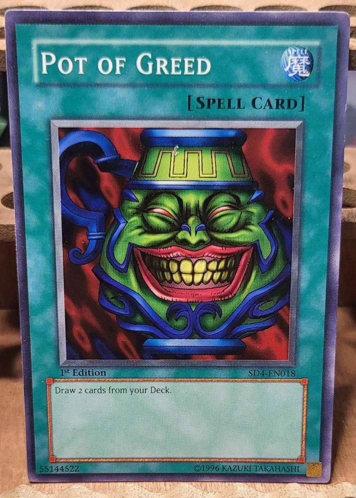 Pot of Greed SD4-EN018 from Structure Deck: Fury from the Deep 1st Edition is a must-have for any Yu-Gi-Oh! TCG collector. This common/short print card is a spell-normal card with 0 attack/power and 0 defense/toughness. Its rarity and features make it a valuable addition to any collection. This English language card is manufactured by Konami and is part of the Structure Deck: Fury from the Deep set. The card number is SD4-EN018 and it belongs to the spell attribute. Get your hands on this 1st edition Pot of Greed card today and add it to your Yu-Gi-Oh! TCG collection.