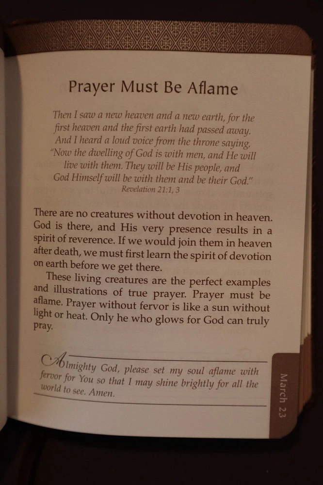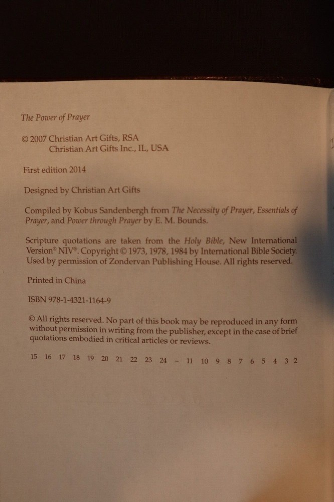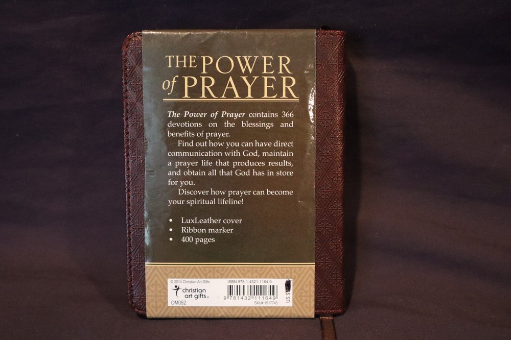 Power of Prayer One Minute Devotional Lux-Leather by Edward M. Bounds, gifting section already filled out, jacket on back has price scribbled out, no other markings...