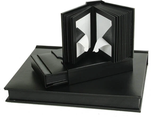 The Legend carries the same quality and craftsmenship as the Destiny, yet has a frame around the photograph for a simple yet elegant presentation. Both albums can be fully assembled in less than 20 minutes. Comes with a slip case as well as outer box. These albums originally sold to professional photographers for $171. If you have any questions please contact us at Midwest Photographic Resource Center 117 Avalon Industrial Parkway Wentzville Missouri 63385 or through email at Ebay. We can custom engrave these albums also. Color: Black Number of pages 16 Number of photographs it holds 32 Size of photographs 11" x 14" Format of album Vertical