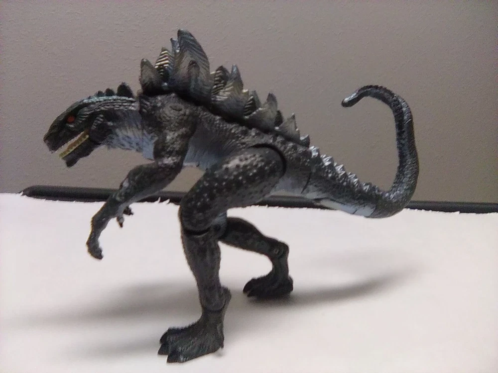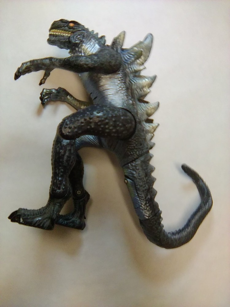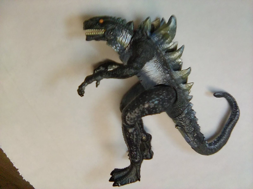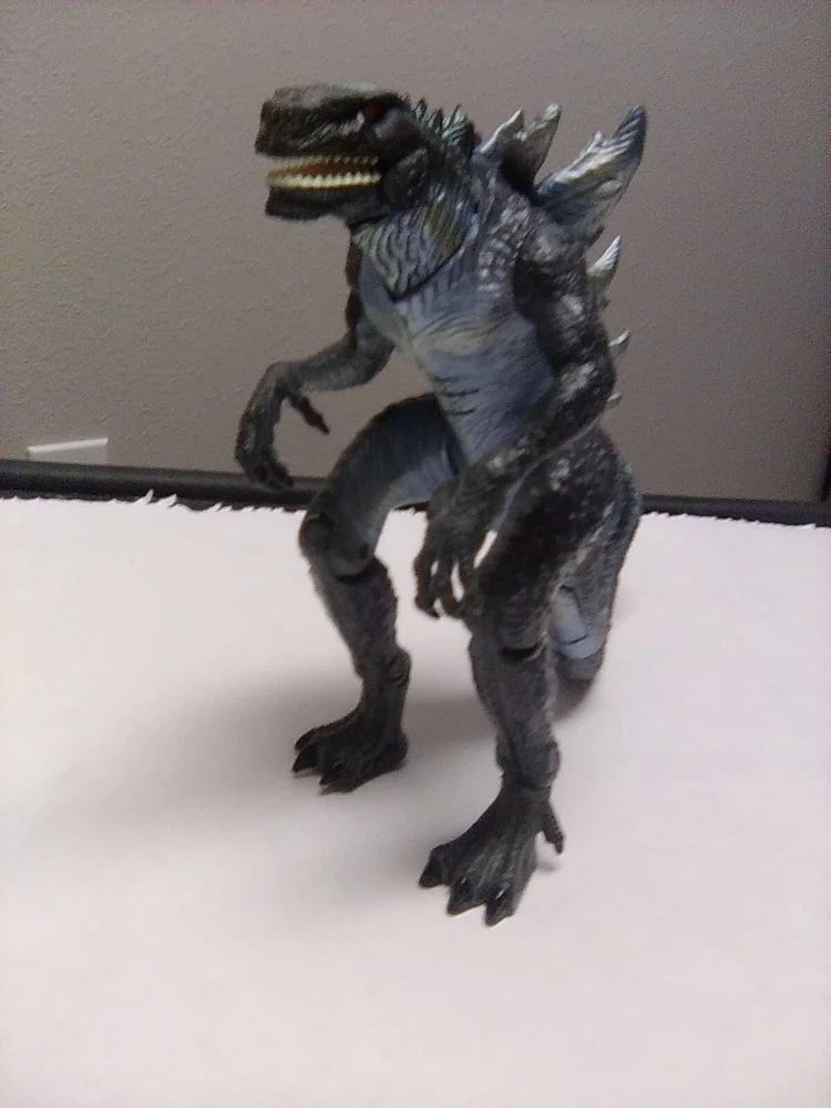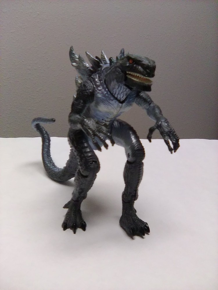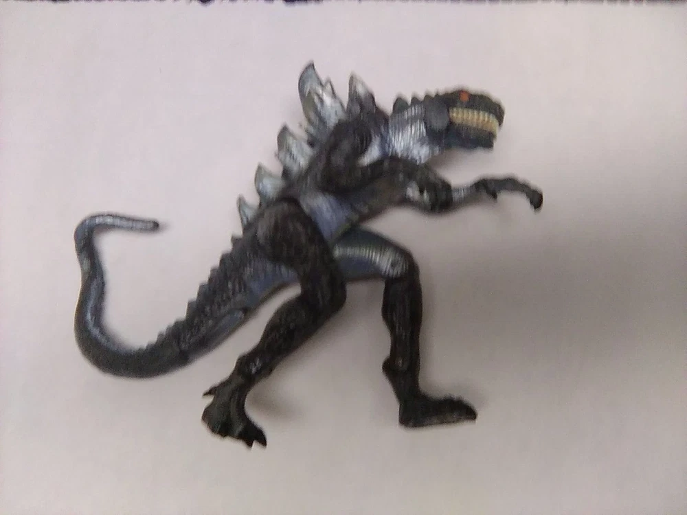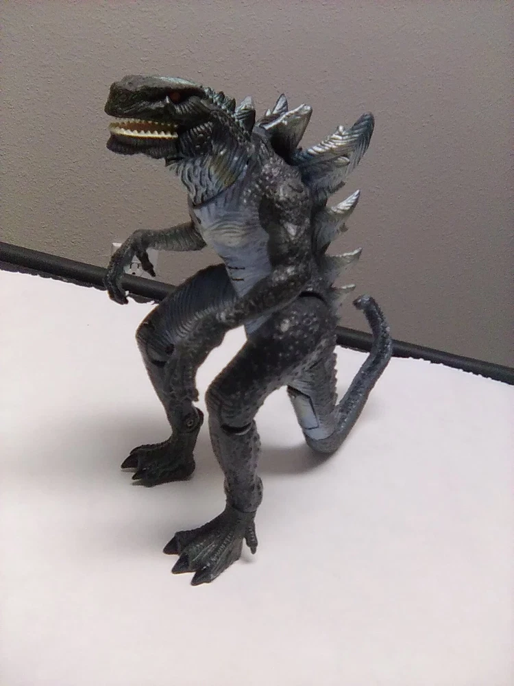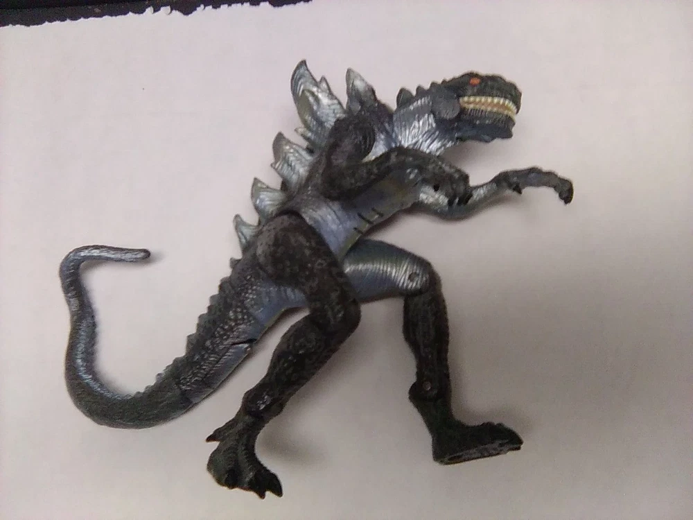 For those who forgave the 1998 Roland Emmerich Godzilla movie, here is a long-discontinued Trendmasters action figure of the famed character in nice condition, ready to add to your Godzilla, Mothra, Rodan and Gamera figures collection to sit on your shelves, for fans and friend to marvel at. I do not know for sure if the growling sound works until I get batteries to test but figure can still pose better than an old G.I. Joe doll plus moving its right leg still can make mouth move and bite. Figure is 8 inches tall, and figure's color shows no signs of wear. I found this cute thing at a Goodwill store (And I'm sure I'll find more in places like Goodwill, thanks to Roland Emmerich) and I knew some Godzilla fan will want this prehistoric road runner. No international shipping, US shipping only. Thank you for looking and good luck.