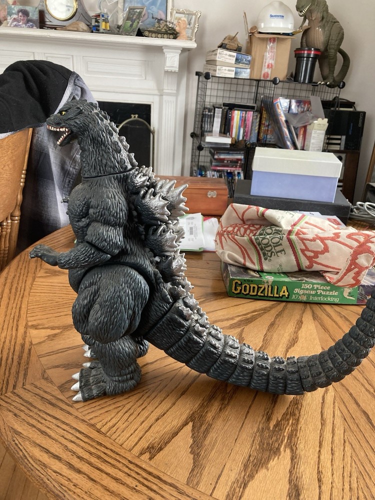 This is a rare and highly sought-after collectible for fans of the iconic monster, Godzilla. Produced in 1993 by Toho Co Ltd, this 14" figure is a must-have for any serious collector. The attention to detail and quality craftsmanship make it a truly special piece. The figure features the classic design of Godzilla as seen in the movies and is made from durable materials that will stand the test of time. This is a great addition to any collection and is sure to be a conversation starter. Don't miss your chance to own this incredible piece of Godzilla memorabilia.