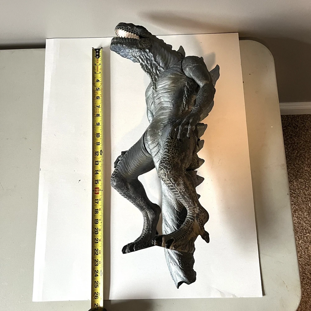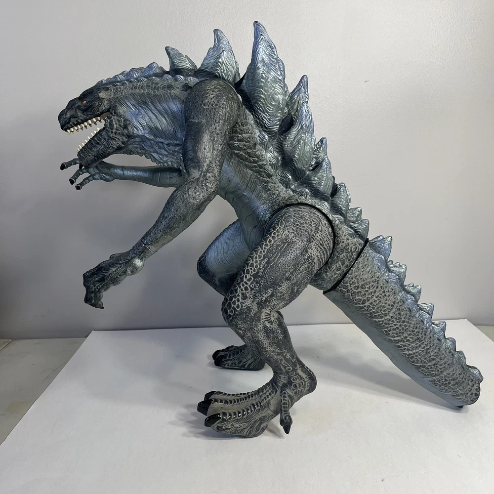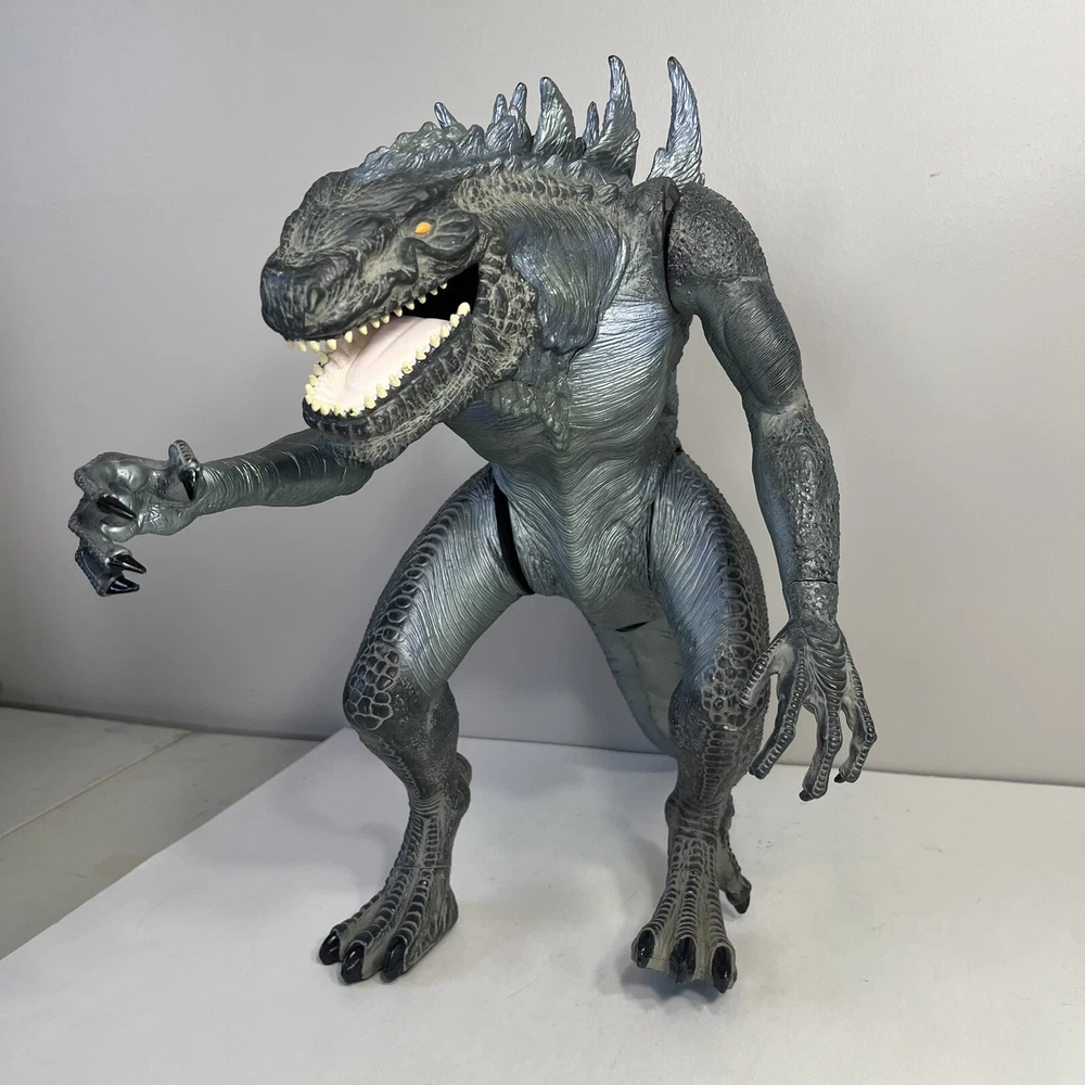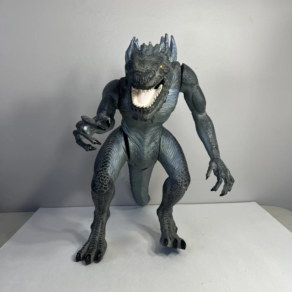 RARE GODZILLA 2 Feet Tall Movie Monster Figure 1998 Toho Tested Working. This item has a growling sound feature that has been tested and is working. PLEASE NOTE that the bottom portion of the tail is missing the end piece. Please see pictures number 12 and 13 for a closer look. Additionally, one arm one leg and the tail joint are all a little loose. Again please see pictures 9, 10 and 11. With the joints being loose, this figure has a tough time standing upright on its own, but is able to do so as can be seen in the pictures. This is an old, rare toy and is in pretty good shape all things considered. Comes with fresh batteries installed. Shipped via fed ex home delivery or usps ground advantage, whichever is more affordable. Thanks for looking!