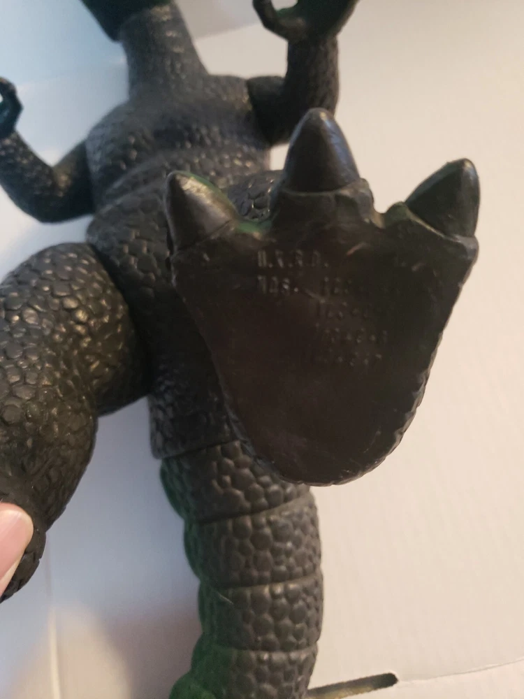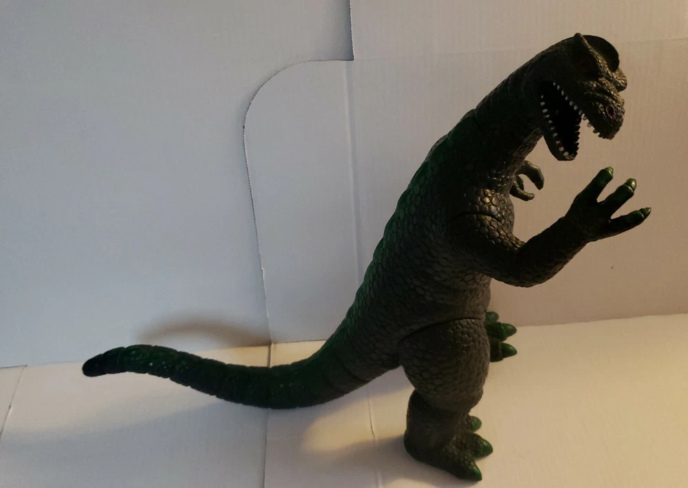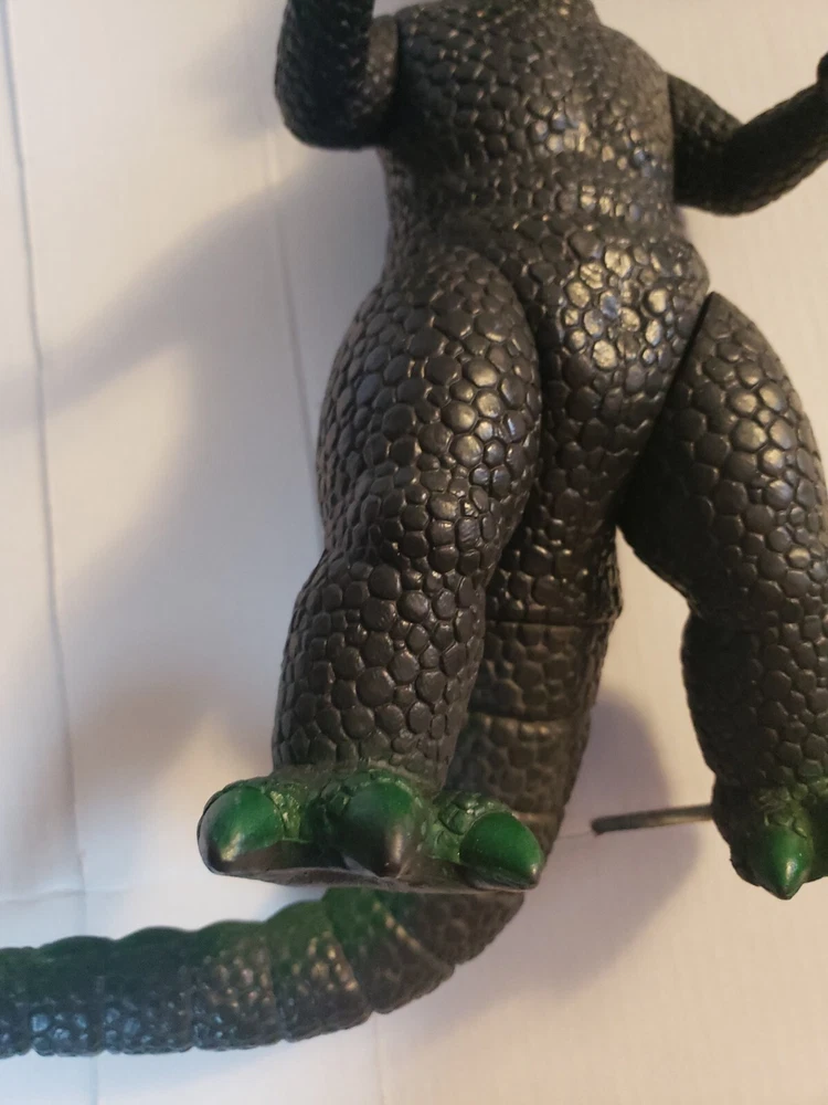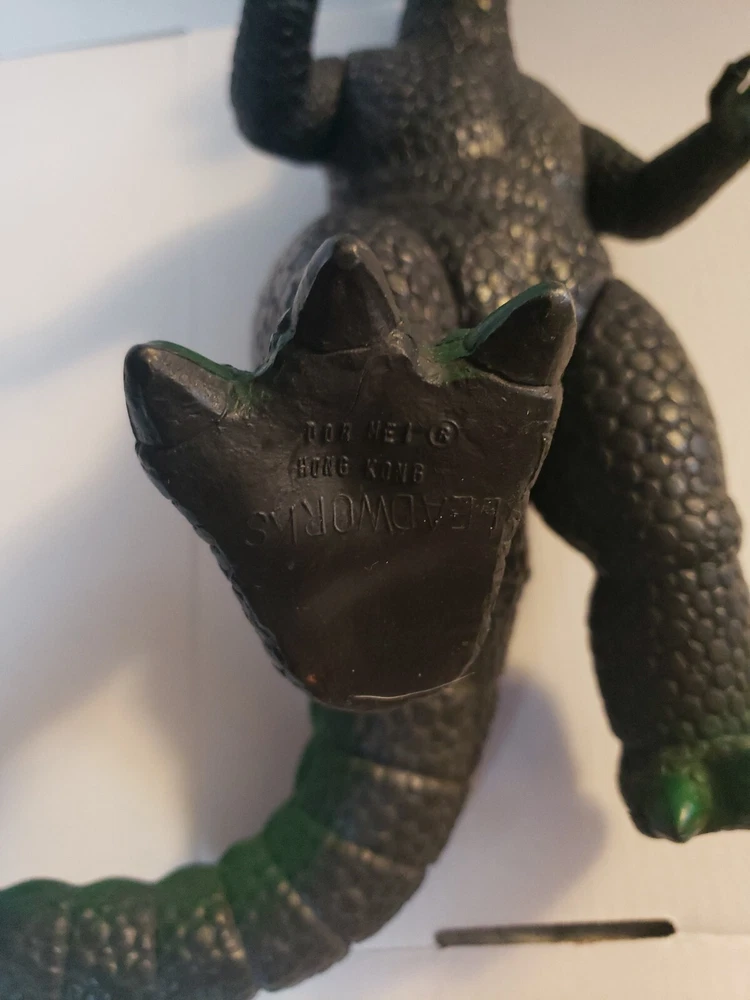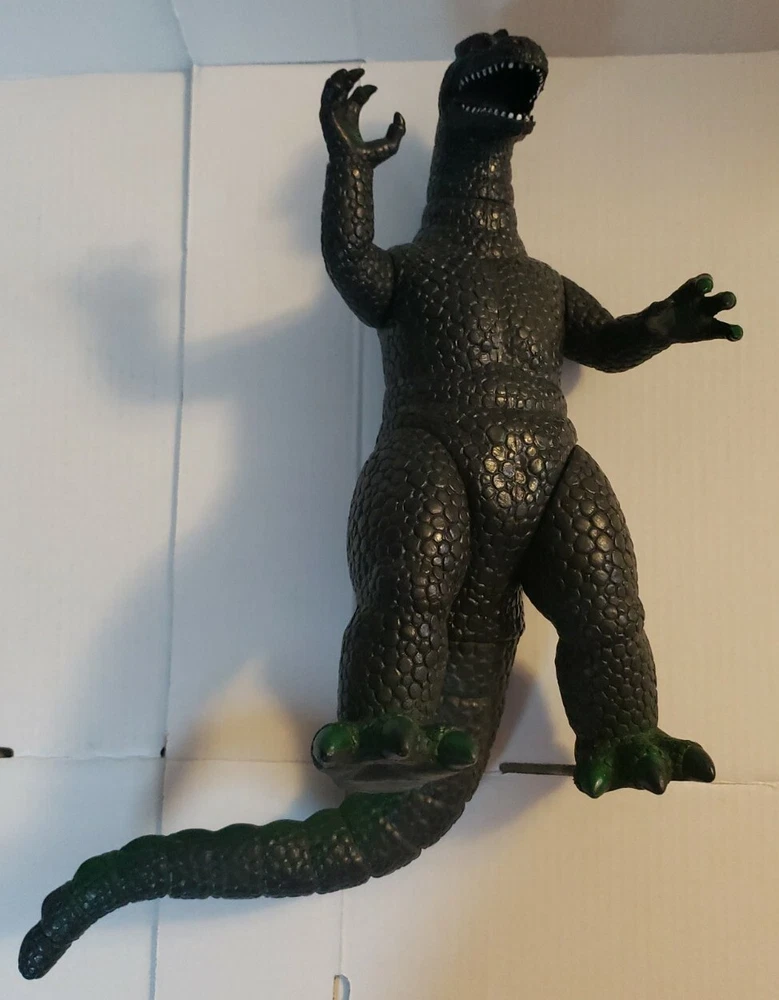 This rare vintage 14" Godzilla action figure by DOR MEI Leadworks is a must-have for any collector. The figure features red and black coloring and was manufactured in Hong Kong. The brand is well-known for producing high-quality toys and this Godzilla figure is no exception. Fans of the Godzilla franchise will love this figure, which is sure to become a centerpiece of any collection. The figure's theme is inspired by the iconic monster movies, making it a perfect addition for anyone who is a fan of the genre. Don't miss out on the chance to own this rare and highly sought-after Godzilla action figure.