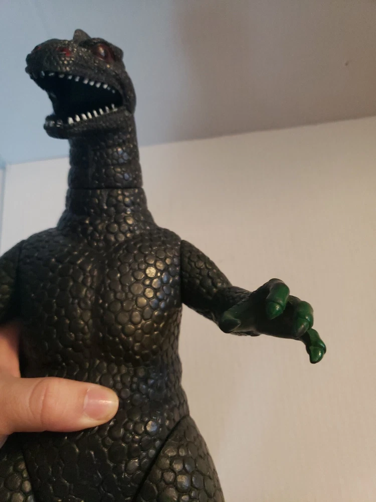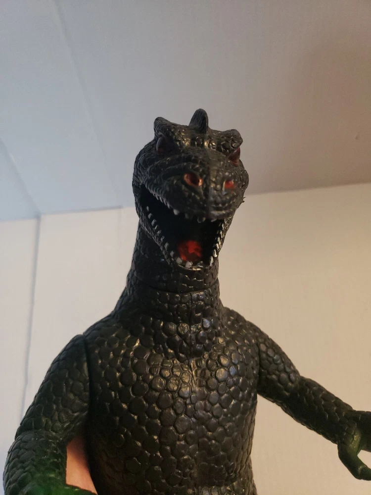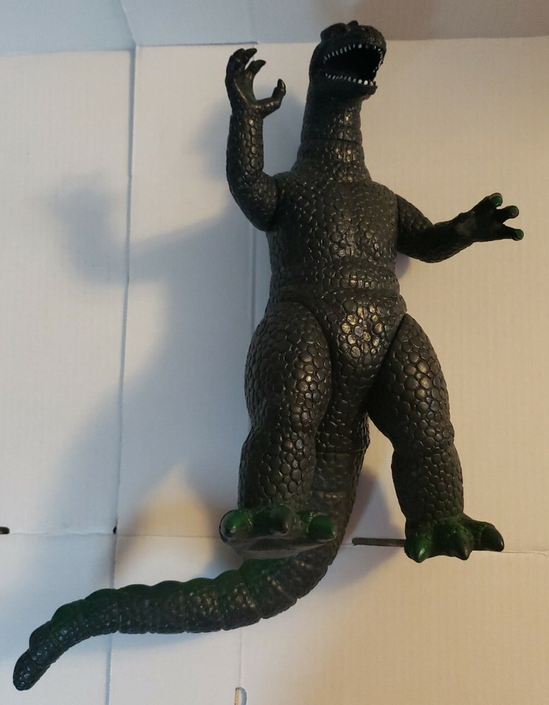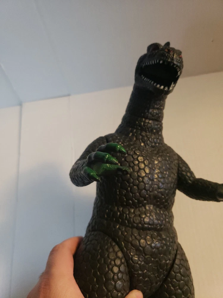 This rare vintage 14" Godzilla action figure by DOR MEI Leadworks is a must-have for any collector. The figure features red and black coloring and was manufactured in Hong Kong. The brand is well-known for producing high-quality toys and this Godzilla figure is no exception. Fans of the Godzilla franchise will love this figure, which is sure to become a centerpiece of any collection. The figure's theme is inspired by the iconic monster movies, making it a perfect addition for anyone who is a fan of the genre. Don't miss out on the chance to own this rare and highly sought-after Godzilla action figure.