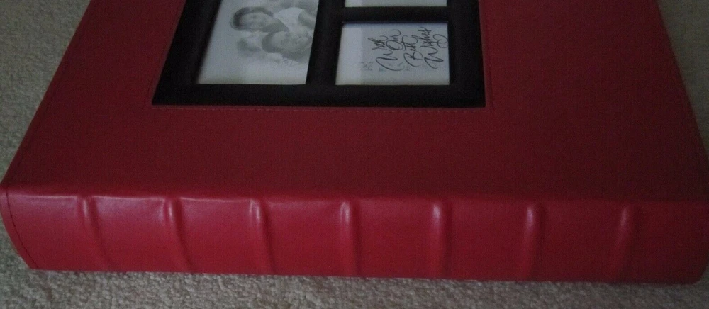 Brand new RECUTMS Photo Album in red. Size: 14.5 in x 13.4 in x 2.5 in with 60 sheets/120 pages. Can hold 5 4x6 photos per page (600 total) Design: Sewn leather collage frame cover, smooth leather texture, looks beautiful and upscale. The photo album cover has a 10 × 10 inch window, which can be changed. Quality: Archival, photo safe acid, lignin and PVC free.Unique 5 transparent pocket pages, easy to store photos. Waterproof.