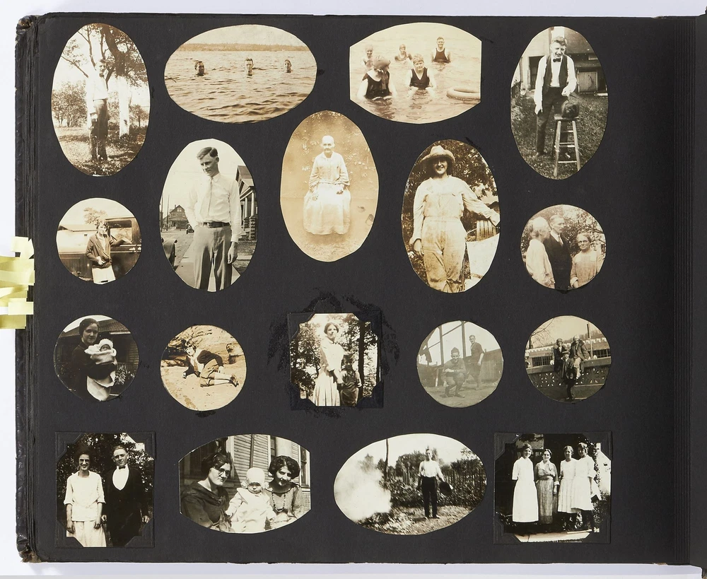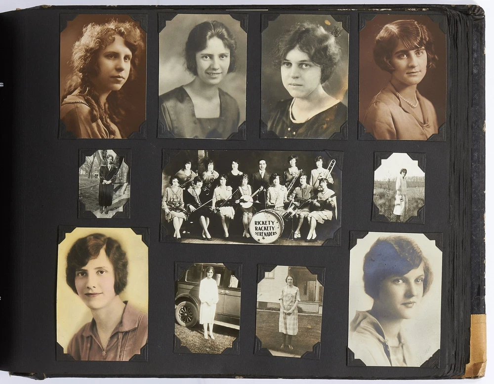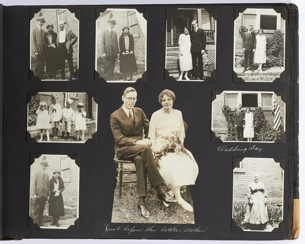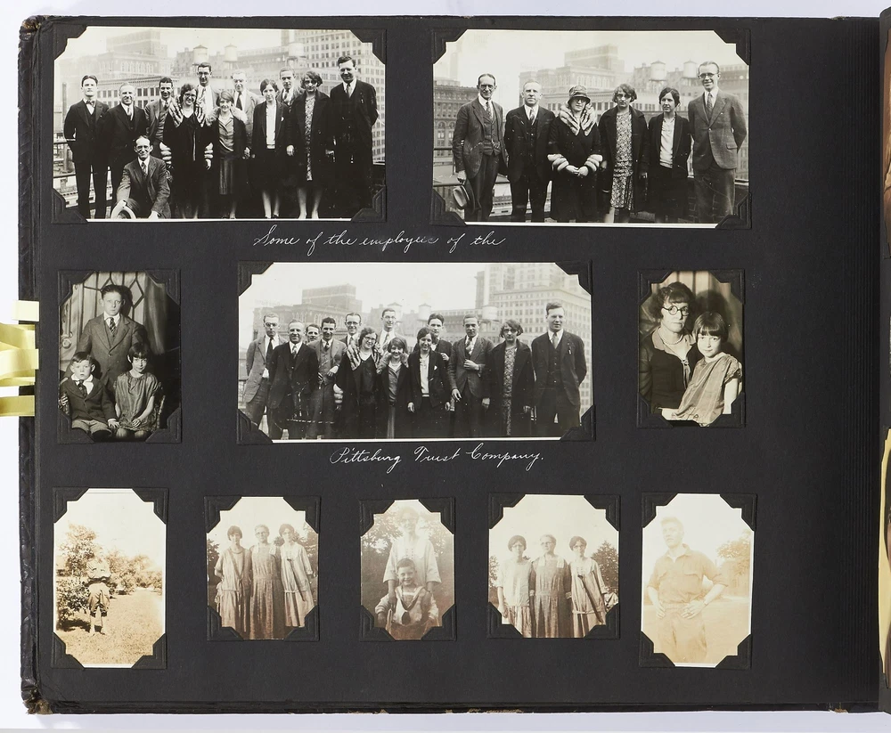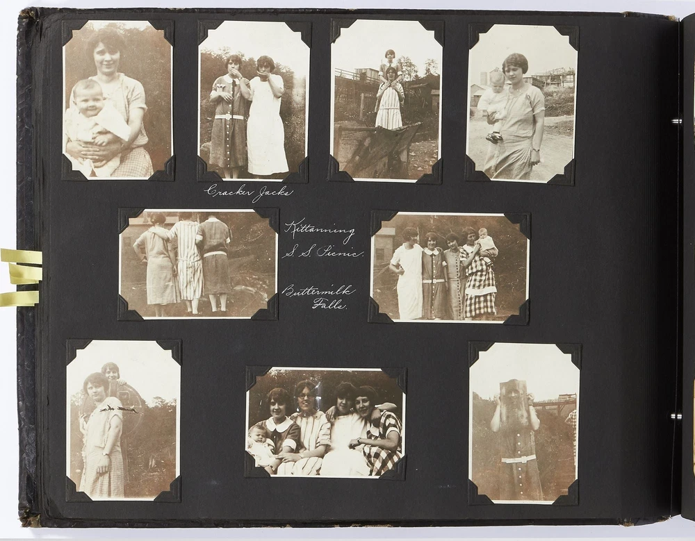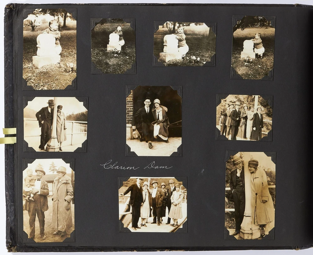 (Photo album): Extensive Family Photo Album of Travel, Fashion, and Nature in the 1920s-1930s Author: WAYNE, Rachel Elyada Title: (Photo album): Extensive Family Photo Album of Travel, Fashion, and Nature in the 1920s-1930s Publication: Pittsburgh, Pennsylvania / New York / Ohio: 1918-1930 Description: Softcover. Oblong quarto measuring 10" x 7". String tied, black leather over stiff paper boards. Contains 1,020 black and white gelatin silver or sepia toned photographs measuring between 0.5" x 0.5" and 5" x 4" with some captions. Some edgewear else near fine album with fine photographs. An abundant collection of family photographs from 1918 through to 1930 collected by Rachel Elyada Wayne. The photographs are well composed even including some photographs with intentional double exposures and diamond cut outs. Wayne's family lived in Pittsburgh, Pennsylvania occasionally traveling together on family vacations or adventuring with friends. The family often travels to various places in New York, Pennsylvania, and Ohio, with captions such as, "Taken at Columbus, Ohio after eating our lunch, when a flat tire was being fixed and just before committing on our way to Cincinnati and Newport, NY July 1928". There are several pictures of Wayne and her family visiting the state capital in New York and on Coney Island, camping trips in Vandergrift, Pennsylvania, and family reunions in Youngstown, Ohio. The traveling photos usually show the family's automobiles from the 1920s and pictures of their camping groups, Apollo Camp and Luchlurg Camp. They also visited different caves including Mammoth and Sand Cave in Kentucky. One family trip also shows a small plane crashed into the ground, smoke and flames caught by the camera. The photographs cover a wide span of the different family member's lives. There are pictures of babies and young children that later are shown as teenagers making funny faces, posing, or in one photo eating Cracker Jacks. There are a couple wedding photographs, pictures of family gatherings, posed outfit pictures, photos of people dancing, and one with an elderly couple pretending to battle with brooms. Small captions are written on photographs with the names of the children, "Che Che's Happy-go-lucky!" The album also mentions where some of the family members worked. A large group photo with Rachel Elyada Wayne and some of her family members is pictured with the caption "Pittsburgh Trust Co." as Rachel was a stenographer for the bank. There are also a couple photos of some of the young women in the Rickety Rackety Serenaders, a women's singing group and instrumental band. Included are several photographs of some of the young men in their military uniforms dated 1929. Some of the photographs are of animals and nature. A few of the photographs are of deer in the snow, the camping sites, and some of the boats in the rivers. There are also a couple pictures of a lightning storm, where the bolts of lightning can be seen in the photographs. An extensive collection of particularly aesthetically pleasing family photographs featuring nature, fashion, and travel during the 1920s through to the 1930s. Seller ID: 417814 Subject: Photography, Travel Books Between the Covers Between the Covers has been selling books for more than 30 years. Today we offer a wide ranging inventory, from Modern First Editions to General Used Books to Rare Archival Collections. We are active members of the Antiquarian Booksellers' Association of America (ABAA) and the International League of Antiquarian Booksellers (ILAB) . Terms All orders ship within two business days. Standard mail is USPS Media Mail. Expedited and international shipping are also available. We offer combined shipping on multiple orders. All books are guaranteed to be as described or they may be returned within 30 days of receipt for a full refund. This listing was created by Bibliopolis.