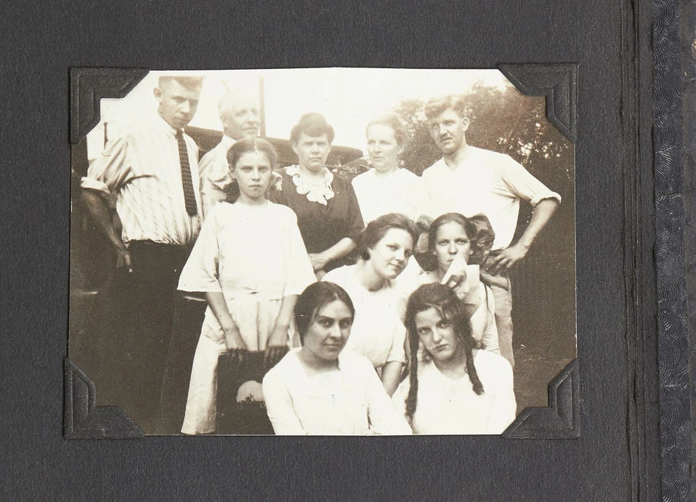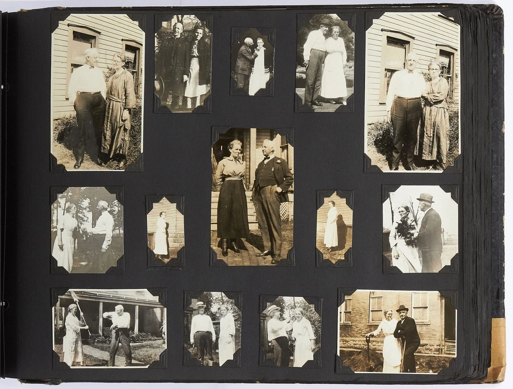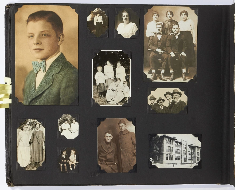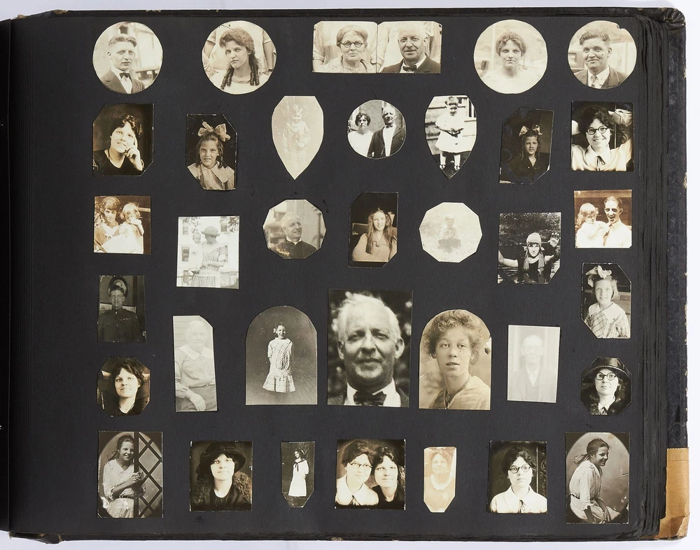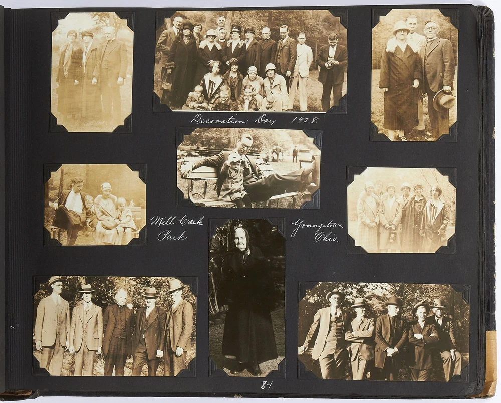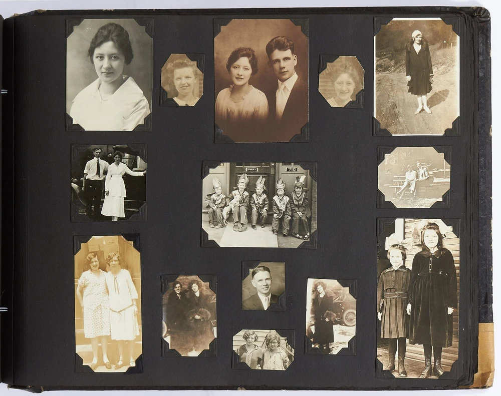(Photo album): Extensive Family Photo Album of Travel, Fashion, and Nature in the 1920s-1930s Author: WAYNE, Rachel Elyada Title: (Photo album): Extensive Family Photo Album of Travel, Fashion, and Nature in the 1920s-1930s Publication: Pittsburgh, Pennsylvania / New York / Ohio: 1918-1930 Description: Softcover. Oblong quarto measuring 10" x 7". String tied, black leather over stiff paper boards. Contains 1,020 black and white gelatin silver or sepia toned photographs measuring between 0.5" x 0.5" and 5" x 4" with some captions. Some edgewear else near fine album with fine photographs. An abundant collection of family photographs from 1918 through to 1930 collected by Rachel Elyada Wayne. The photographs are well composed even including some photographs with intentional double exposures and diamond cut outs. Wayne's family lived in Pittsburgh, Pennsylvania occasionally traveling together on family vacations or adventuring with friends. The family often travels to various places in New York, Pennsylvania, and Ohio, with captions such as, "Taken at Columbus, Ohio after eating our lunch, when a flat tire was being fixed and just before committing on our way to Cincinnati and Newport, NY July 1928". There are several pictures of Wayne and her family visiting the state capital in New York and on Coney Island, camping trips in Vandergrift, Pennsylvania, and family reunions in Youngstown, Ohio. The traveling photos usually show the family's automobiles from the 1920s and pictures of their camping groups, Apollo Camp and Luchlurg Camp. They also visited different caves including Mammoth and Sand Cave in Kentucky. One family trip also shows a small plane crashed into the ground, smoke and flames caught by the camera. The photographs cover a wide span of the different family member's lives. There are pictures of babies and young children that later are shown as teenagers making funny faces, posing, or in one photo eating Cracker Jacks. There are a couple wedding photographs, pictures of family gatherings, posed outfit pictures, photos of people dancing, and one with an elderly couple pretending to battle with brooms. Small captions are written on photographs with the names of the children, "Che Che's Happy-go-lucky!" The album also mentions where some of the family members worked. A large group photo with Rachel Elyada Wayne and some of her family members is pictured with the caption "Pittsburgh Trust Co." as Rachel was a stenographer for the bank. There are also a couple photos of some of the young women in the Rickety Rackety Serenaders, a women's singing group and instrumental band. Included are several photographs of some of the young men in their military uniforms dated 1929. Some of the photographs are of animals and nature. A few of the photographs are of deer in the snow, the camping sites, and some of the boats in the rivers. There are also a couple pictures of a lightning storm, where the bolts of lightning can be seen in the photographs. An extensive collection of particularly aesthetically pleasing family photographs featuring nature, fashion, and travel during the 1920s through to the 1930s. Seller ID: 417814 Subject: Photography, Travel Books Between the Covers Between the Covers has been selling books for more than 30 years. Today we offer a wide ranging inventory, from Modern First Editions to General Used Books to Rare Archival Collections. We are active members of the Antiquarian Booksellers' Association of America (ABAA) and the International League of Antiquarian Booksellers (ILAB) . Terms All orders ship within two business days. Standard mail is USPS Media Mail. Expedited and international shipping are also available. We offer combined shipping on multiple orders. All books are guaranteed to be as described or they may be returned within 30 days of receipt for a full refund. This listing was created by Bibliopolis.