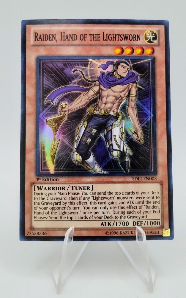 Raiden, Hand of the Lightsworn 1st Edition SDLI-EN003 Structure Deck: Realm of Light 2014 Yu-Gi-Oh Card Cards in Lightly Played (LP) condition may have minor border or corner wear, scuffs or scratches. There are no significant imperfections or issues with the structural integrity of the card. Noticeable imperfections are okay, but none should be too severe or at too high a volume. The acceptable range of cards within the Lightly Played condition includes both cards with few or a handful of minor imperfections.