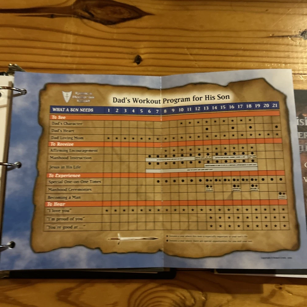 Preowned Raising A Modern Day Knight Training Guide & Legacy 3-ring Album. Lightly used, see photos. Most pages are blank. NO DVD Also included: Training Guide & Armour Up Devotional spiral book, excellent, like new. Also included: Leaders Guide, also like new