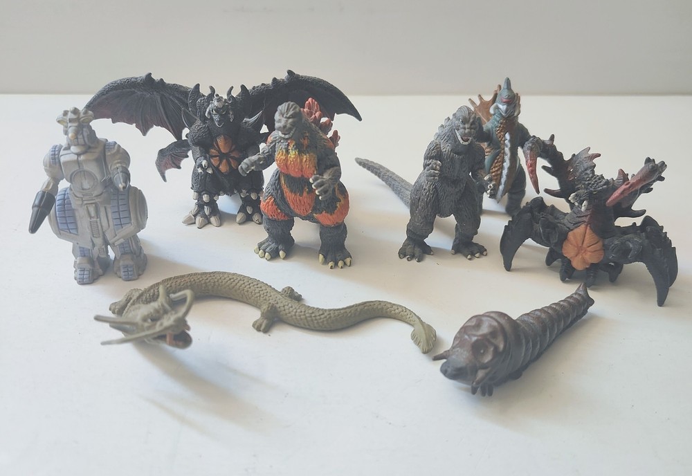 In good condition, no major cosmetic defects. Please review photos for cosmetic condition. Unleash the king of monsters with the rare GODZILLA Mini Figure Pack of Destruction, featuring a set of 8 2-inch figures from 2002. Each meticulously crafted by Bandai, these figures capture the essence of Toho's iconic creature in various poses, perfect for collectors and fans alike. The lot offers a unique bundle, doubling the fun for enthusiasts and bringing a touch of nostalgia to your collection. Designed for fans aged 6 and up, yet suitable for those aged 4-7, these figures are a fantastic way to engage young minds with imaginative play. Manufactured in China, the set comes as a custom bundle without any modifications, ensuring you receive these classic pieces as intended by Bandai. Embrace the excitement and let your collection roar with these sought-after Godzilla miniatures.
