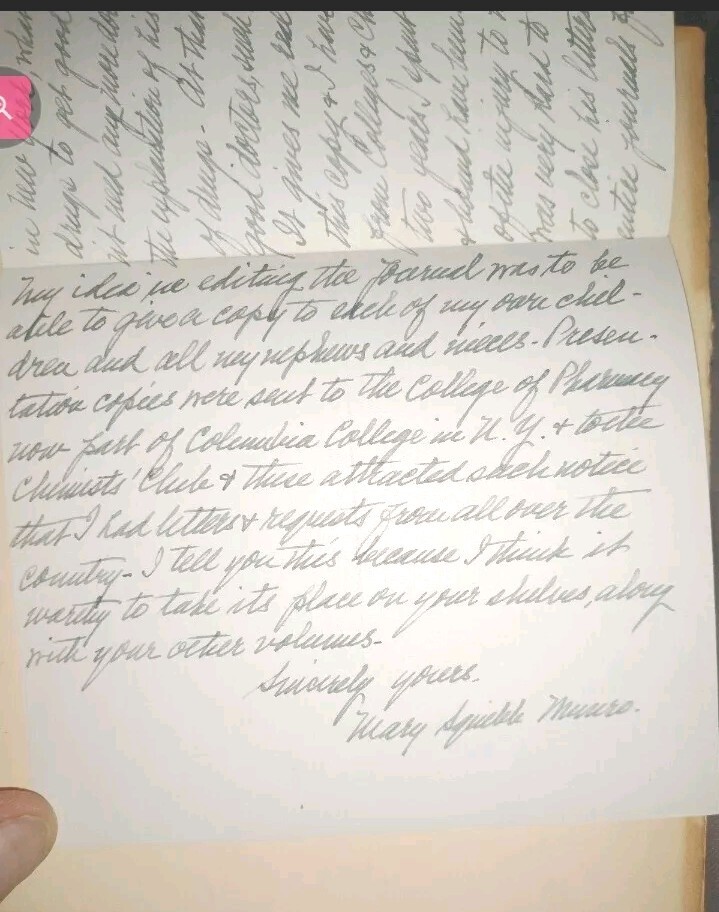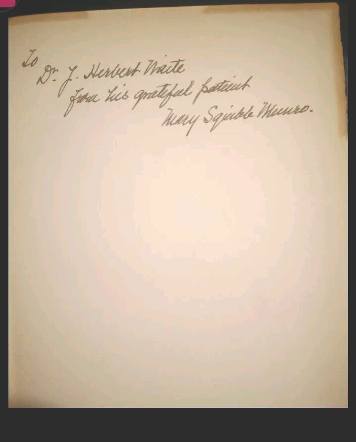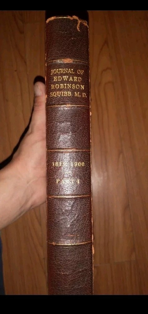 This book here is an important book in mint condition other than a few staining to the cover it's hard bound leather nice it's signed by the author's daughter Mary Squibb anybody knows the squibb family they ended up as Bristol Meyers squibb pharmaceuticals. Included is a letter from Mary Squibb Navarro explaining to the author her opinion of the book and how much she greatly appreciated everything. The book appears to be privately printed for her signed Dr Herbert hight for his grateful partner Mary Squibb Myers copyright John c Munro 1930. To my brother Charles fellow Squibb who's generosity and never feeling interest have made these volumes possible included our naval records of Edward Robinson Squibb personal journals moral address by Joseph Remington genealogy characteristics many illustrations Really excellent book for any collector botanical botanical just plain history that this book has is amazing One of a Kind piece. The squid family now owns the largest pharmaceutical company.
