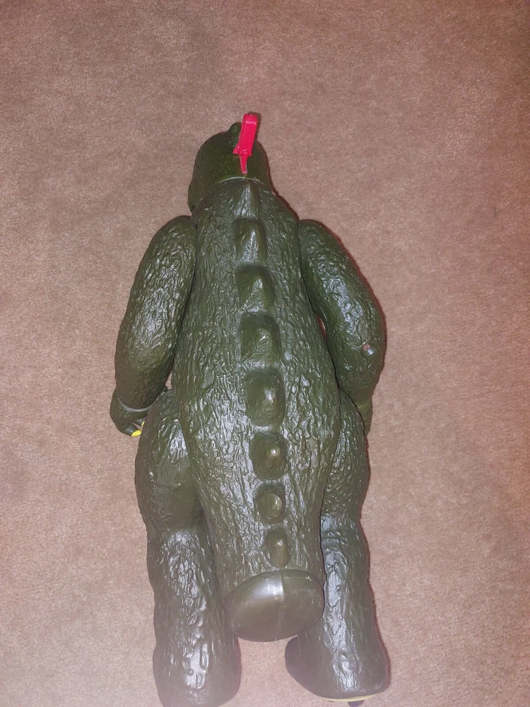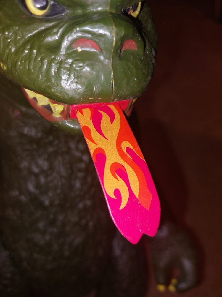 The figure does have wear and the tail is missing. The button tab is broken off but the fist does fire. The tongue also works. Please feel free to ask questions....