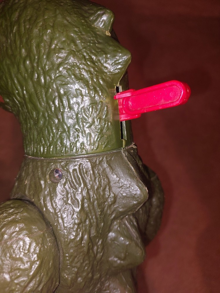 The figure does have wear and the tail is missing. The button tab is broken off but the fist does fire. The tongue also works. Please feel free to ask questions.